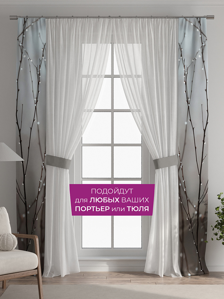 Если у вас уже есть портьеры или тюль, добавление наших узких штор с подхватами — самый быстрый, простой и доступный способ обновить интерьер, не меняя основной текстиль, а значит без лишних затрат.