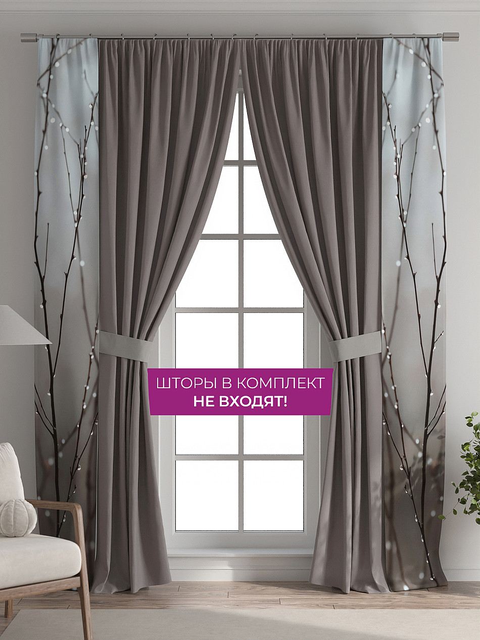В комплект входят две узкие шторы шириной всего 38 см и длиной 260 см., которые навешиваются рядом с вашими занавесками или тюлем не утяжеляя вид окна и не препятствуя попаданию солнечного света в комнату. При этом выполняют роль подхватов и добавляют акцент в интерьер.