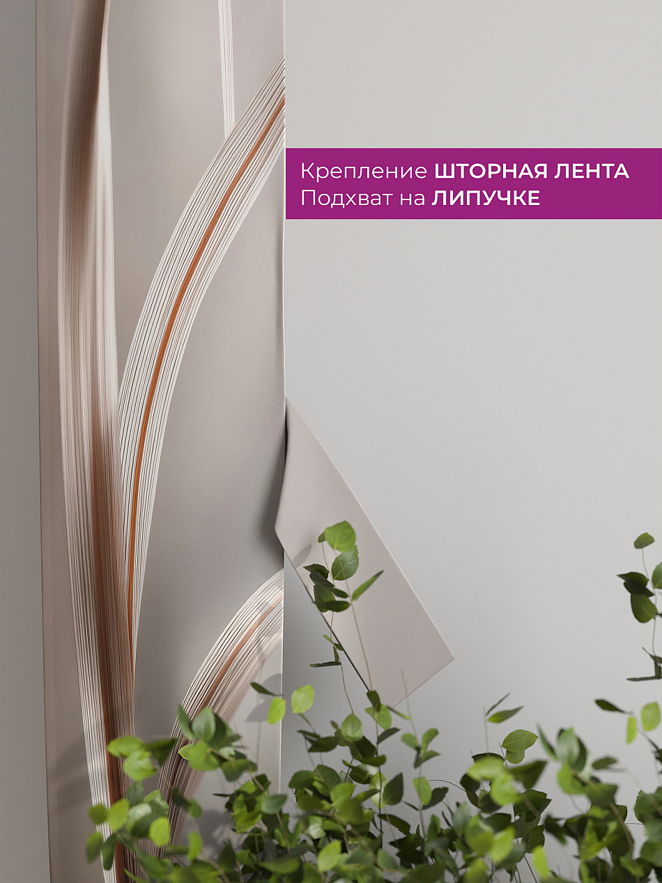 На высоте 125 см. пришит подхват (ширина 10 см.), который позволяет легко зафиксировать ваш тюль или шторы в нужном положении при помощи липучки.