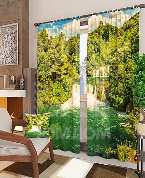 Портьеры 2 шт. Комплект штор из плотной ткани (Блэкаут) сатинового плетения оформлена фотопечатью. Ткань затемняет помещение, обладает тепло - и звукоизоляцией. Блэкаут прекрасно драпируется, образуя округлые складки. Шторы станут удачным решением при оформлении любого помещения. Ткань неприхотлива в уходе, возможна деликатная стирка.