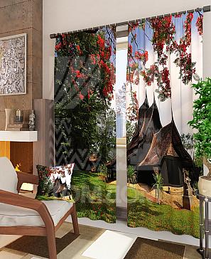 Портьеры 2 шт. Комплект штор из плотной ткани (Блэкаут) сатинового плетения оформлена фотопечатью. Ткань затемняет помещение, обладает тепло - и звукоизоляцией. Блэкаут прекрасно драпируется, образуя округлые складки. Шторы станут удачным решением при оформлении любого помещения. Ткань неприхотлива в уходе, возможна деликатная стирка.