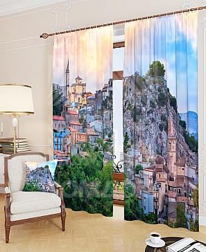 Портьеры 2 шт. Комплект штор из плотной ткани (Блэкаут) сатинового плетения оформлена фотопечатью. Ткань затемняет помещение, обладает тепло - и звукоизоляцией. Блэкаут прекрасно драпируется, образуя округлые складки. Шторы станут удачным решением при оформлении любого помещения. Ткань неприхотлива в уходе, возможна деликатная стирка.
