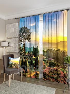 Портьеры 2 шт. Комплект штор из плотной ткани (Блэкаут) сатинового плетения оформлена фотопечатью. Ткань затемняет помещение, обладает тепло - и звукоизоляцией. Блэкаут прекрасно драпируется, образуя округлые складки. Шторы станут удачным решением при оформлении любого помещения. Ткань неприхотлива в уходе, возможна деликатная стирка.