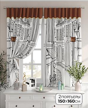 Портьеры 2 шт. Комплект штор из легкой портьерной ткани (габардин) оформлен печатным рисунком. Печатный рисунок дает широкие возможности обновить интерьер фактически не требуя ремонта за счет огромного выбора. Ткани с печатным рисунком безопасны и не содержат токсичных веществ. Не смотря на то, что материал легкий, он имеет высокую плотность, мало загрязнятся и не требует особого ухода даже после стирки, что важно для кухонных занавесок. Шторы не выцветают, не растягиваются, превосходно драпируются, образуя струящиеся складки. Прекрасное решение для создания красоты и уюта с помощью уникальных дизайнов.