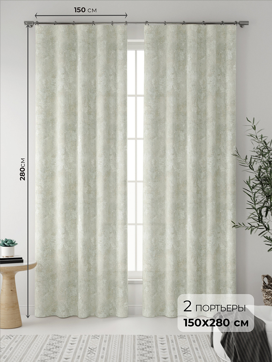 Портьера 150х280 см. — 2 шт. ( Изменить высоту) Крепление: шторная лента (крючки), кулиска Подробнее