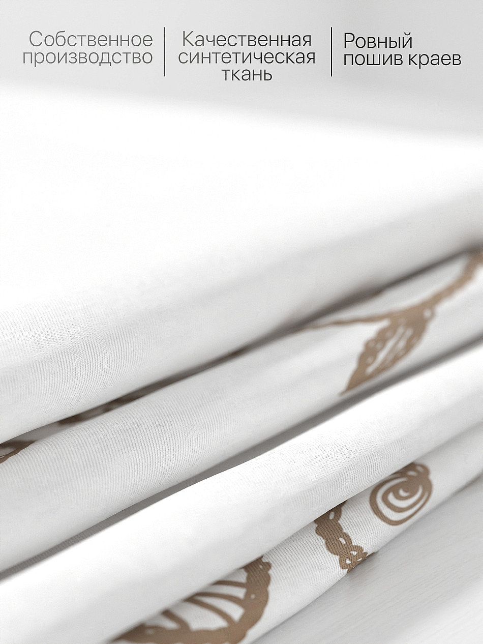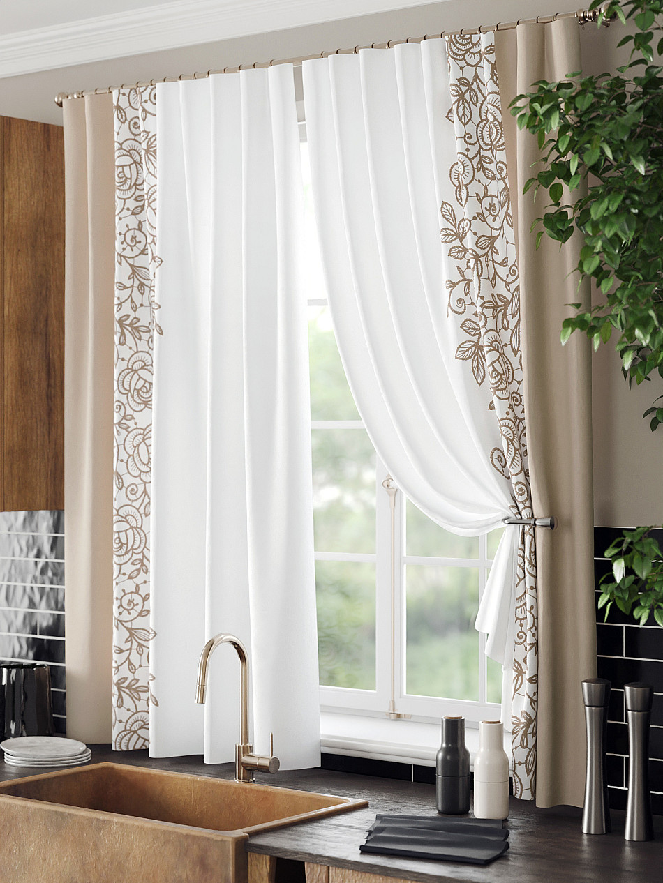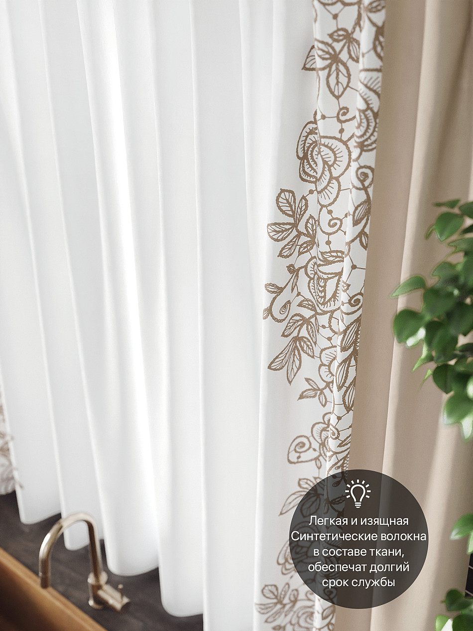 Комплект штор из легкой портьерной ткани (габардин) оформлен печатным рисунком. Печатный рисунок дает широкие возможности обновить интерьер фактически нет требуя ремонта за счет огромного выбора. Ткани с печатным рисунком безопасны и не содержат токсичных веществ. Не смотря на то что, материал легкий, он имеет высокую плотность, мало загрязнятся и не требует особого ухода даже после стирки, что важно для кухонных занавесок. Шторы не выцветают, не растягиваются, превосходно драпируются, образуя струящиеся складки. Прекрасное решение для создания красоты и уюта с помощью уникальных дизайнов.