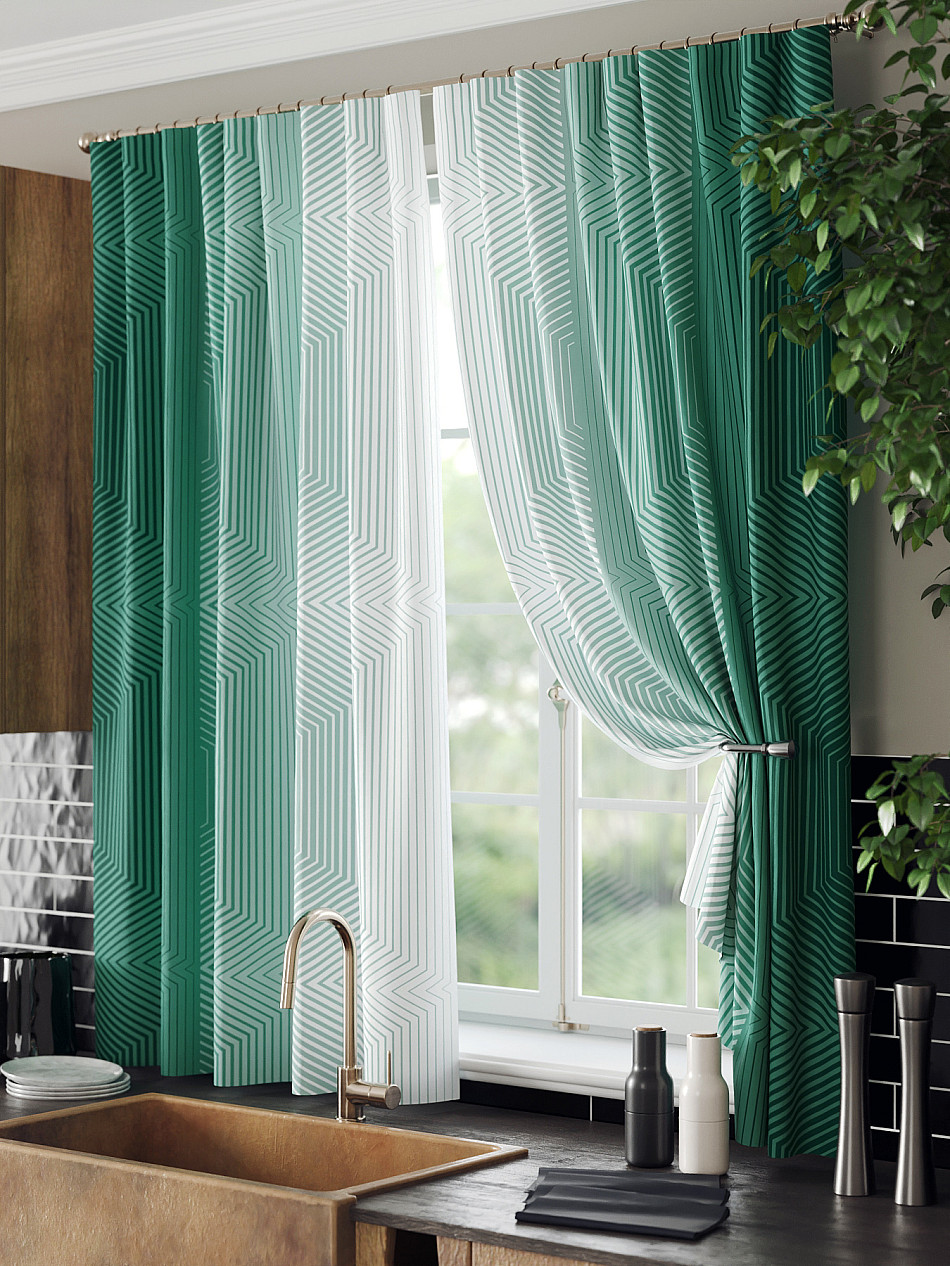 Комплект штор из легкой портьерной ткани (габардин) оформлен печатным рисунком. Печатный рисунок дает широкие возможности обновить интерьер фактически нет требуя ремонта за счет огромного выбора. Ткани с печатным рисунком безопасны и не содержат токсичных веществ. Не смотря на то что, материал легкий, он имеет высокую плотность, мало загрязнятся и не требует особого ухода даже после стирки, что важно для кухонных занавесок. Шторы не выцветают, не растягиваются, превосходно драпируются, образуя струящиеся складки. Прекрасное решение для создания красоты и уюта с помощью уникальных дизайнов.