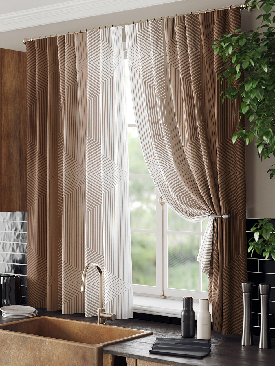 Шторы намного красивее, чем на фото, очень оригинальный геометрической рисунок.