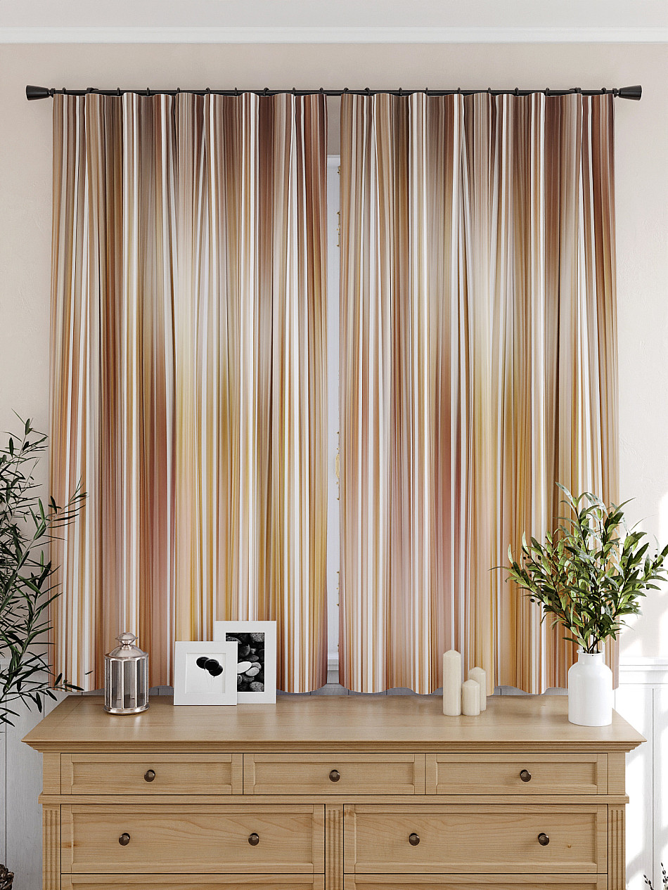 На фото более бежевые, на самом деле есть жёлто-оранжевые полоски. Посмотрю, как будут смотреться на окне и гармонировать с тюлем. Если не очень, закажу похожие, но беж с коричневым.
