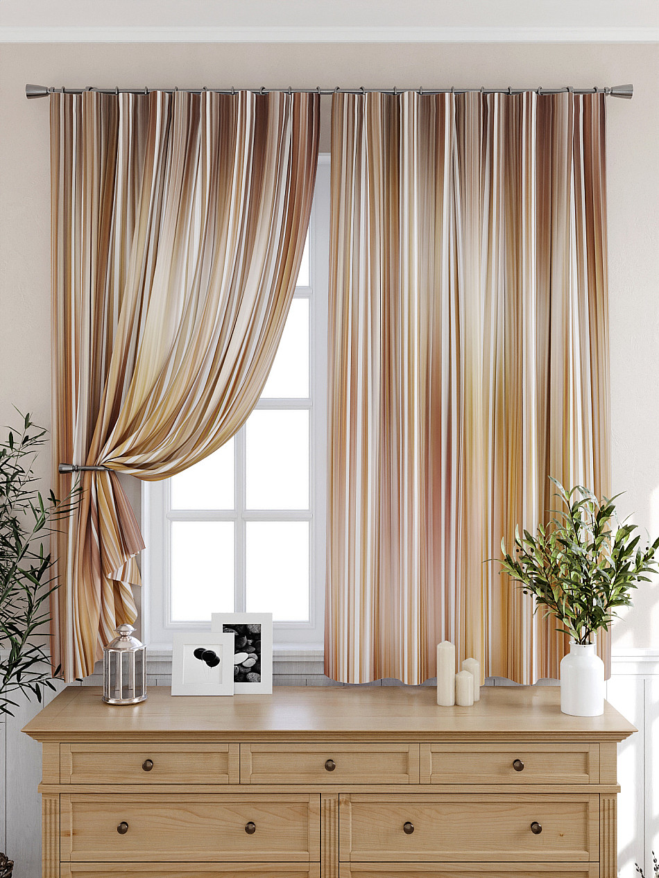 Портьеры 2 шт: Комплект штор из портьерной ткани с отделкой. Фактура ткани прекрасно гармонирует с любым интерьером, а печатный рисунок дает широкие возможности обновить интерьер, фактически не требуя ремонта, за счет огромного выбора. Ткань износостойкая и не требует особого ухода, превосходно драпируется образуя струящиеся складки. Прекрасное решение для создания красоты и уюта с помощью уникальных дизайнов.
