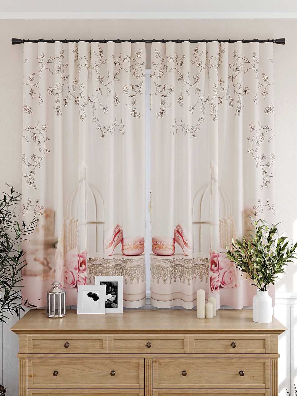 Портьеры 2 шт: Комплект штор из легкой портьерной ткани (габардин) оформлен печатным рисунком. Печатный рисунок дает широкие возможности обновить интерьер фактически нет требуя ремонта за счет огромного выбора. Ткани с печатным рисунком безопасны и не содержат токсичных веществ. Не смотря на то что, материал легкий, он имеет высокую плотность, мало загрязнятся и не требует особого ухода даже после стирки, что важно для кухонных занавесок. Шторы не выцветают, не растягиваются, превосходно драпируются, образуя струящиеся складки. Прекрасное решение для создания красоты и уюта с помощью уникальных дизайнов.