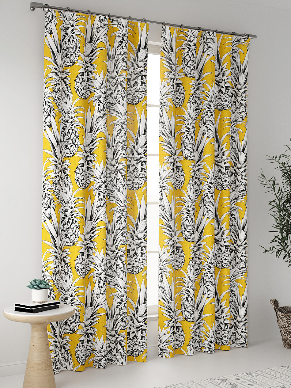 Комплект штор из легкой портьерной ткани (габардин) оформлен печатным рисунком. Печатный рисунок дает широкие возможности обновить интерьер фактически нет требуя ремонта за счет огромного выбора. Ткани с печатным рисунком безопасны и не содержат токсичных веществ. Не смотря на то что, материал легкий, он имеет высокую плотность, мало загрязнятся и не требует особого ухода даже после стирки, что важно для кухонных занавесок. Шторы не выцветают, не растягиваются, превосходно драпируются, образуя струящиеся складки. Прекрасное решение для создания красоты и уюта с помощью уникальных дизайнов.