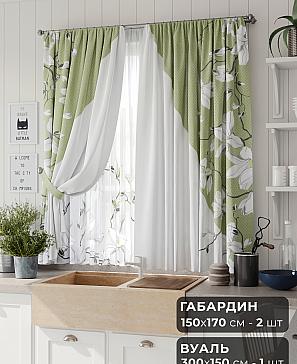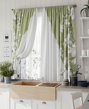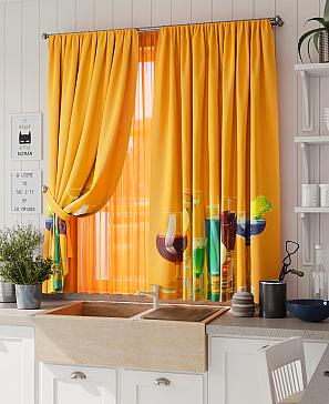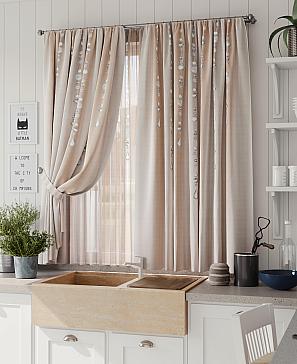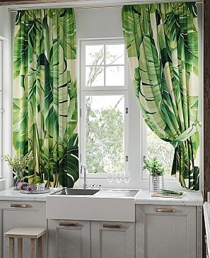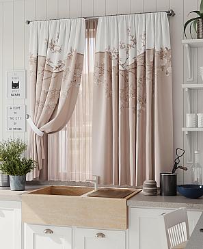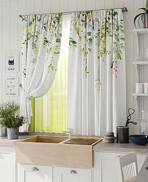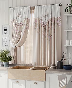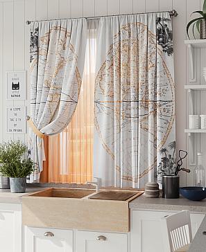 Комплект штор из легкой портьерной ткани (габардин) оформлен печатным рисунком. Печатный рисунок дает широкие возможности обновить интерьер фактически нет требуя ремонта за счет огромного выбора. Ткани с печатным рисунком безопасны и не содержат токсичных веществ. Не смотря на то что, материал легкий, он имеет высокую плотность, мало загрязнятся и не требует особого ухода даже после стирки, что важно для кухонных занавесок. Шторы не выцветают, не растягиваются, превосходно драпируются, образуя струящиеся складки. Прекрасное решение для создания красоты и уюта с помощью уникальных дизайнов.