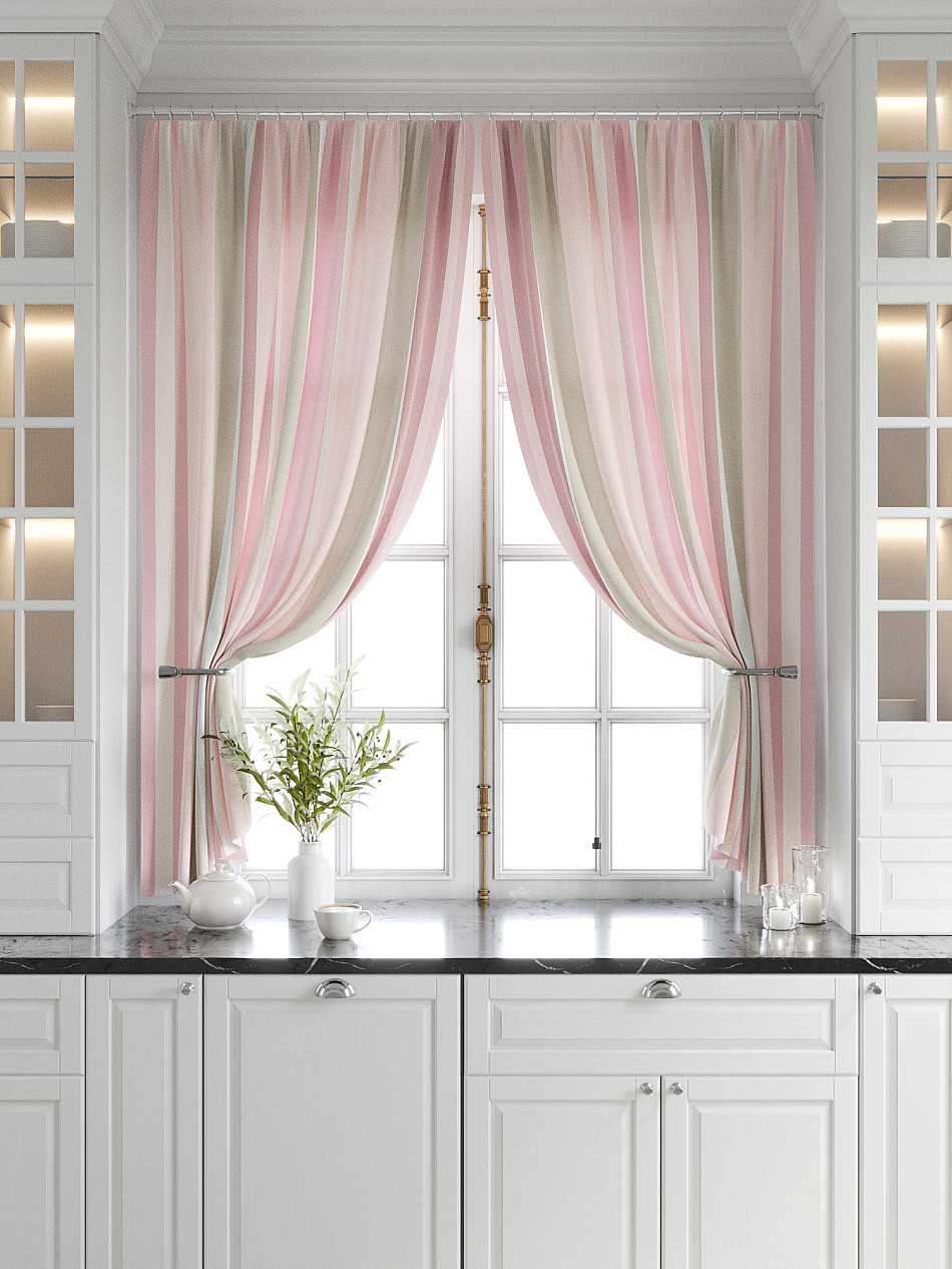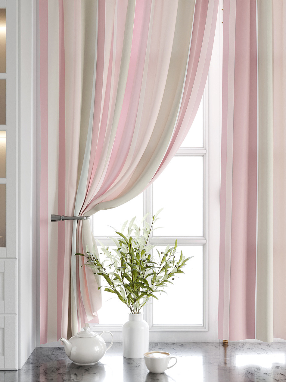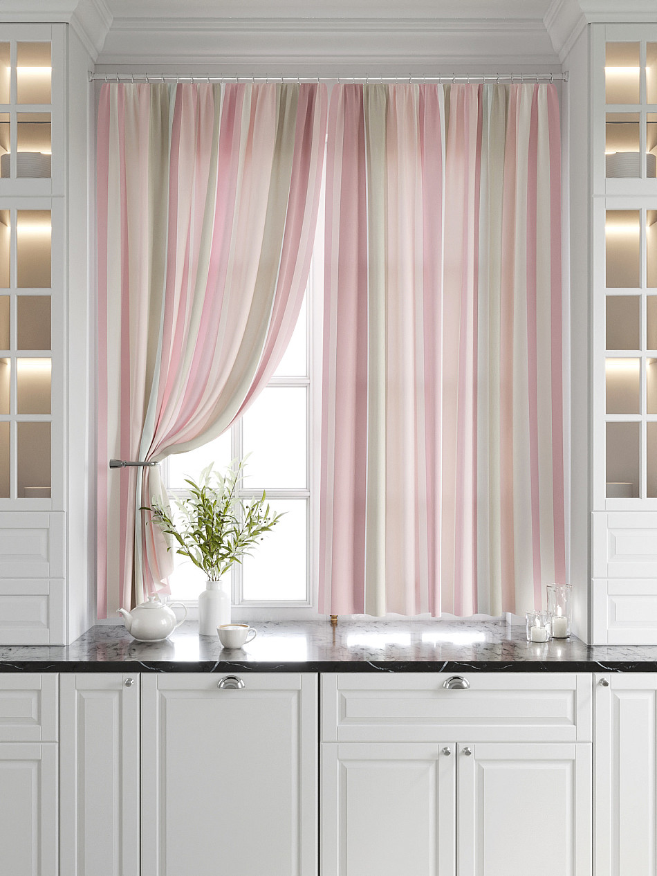 Комплект штор из легкой портьерной ткани (габардин) оформлен печатным рисунком. Печатный рисунок дает широкие возможности обновить интерьер фактически нет требуя ремонта за счет огромного выбора. Ткани с печатным рисунком безопасны и не содержат токсичных веществ. Не смотря на то что, материал легкий, он имеет высокую плотность, мало загрязнятся и не требует особого ухода даже после стирки, что важно для кухонных занавесок. Шторы не выцветают, не растягиваются, превосходно драпируются, образуя струящиеся складки. Прекрасное решение для создания красоты и уюта с помощью уникальных дизайнов.