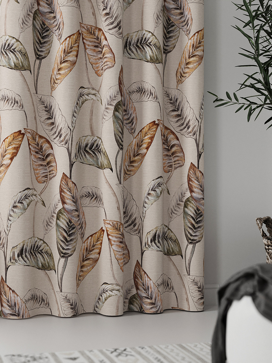 Комплект штор из легкой портьерной ткани (габардин) оформлен печатным рисунком. Печатный рисунок дает широкие возможности обновить интерьер фактически нет требуя ремонта за счет огромного выбора. Ткани с печатным рисунком безопасны и не содержат токсичных веществ. Не смотря на то что, материал легкий, он имеет высокую плотность, мало загрязнятся и не требует особого ухода даже после стирки, что важно для кухонных занавесок. Шторы не выцветают, не растягиваются, превосходно драпируются, образуя струящиеся складки. Прекрасное решение для создания красоты и уюта с помощью уникальных дизайнов.