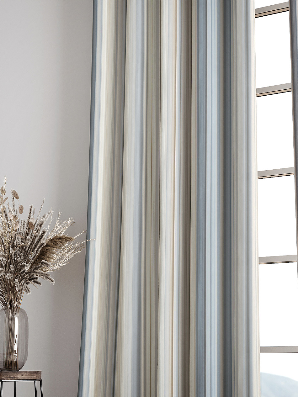 Габардин представляет собой целую группу тканей, которые отличаются содержанием и сочетанием различных волокон – хлопка, шелка, шерсти или синтетики. В зависимости от состава материала, шторы из габардина могут быть разными по плотности и внешнему виду, но всегда отличаются характерным декоративным рубчиком на поверхности. Габардин – идеальная ткань для пошива штор, поскольку она отлично дышит, не мнется, легкая и мягкая на ощупь, но при этом прочная и хорошо защищает от солнечных лучей.