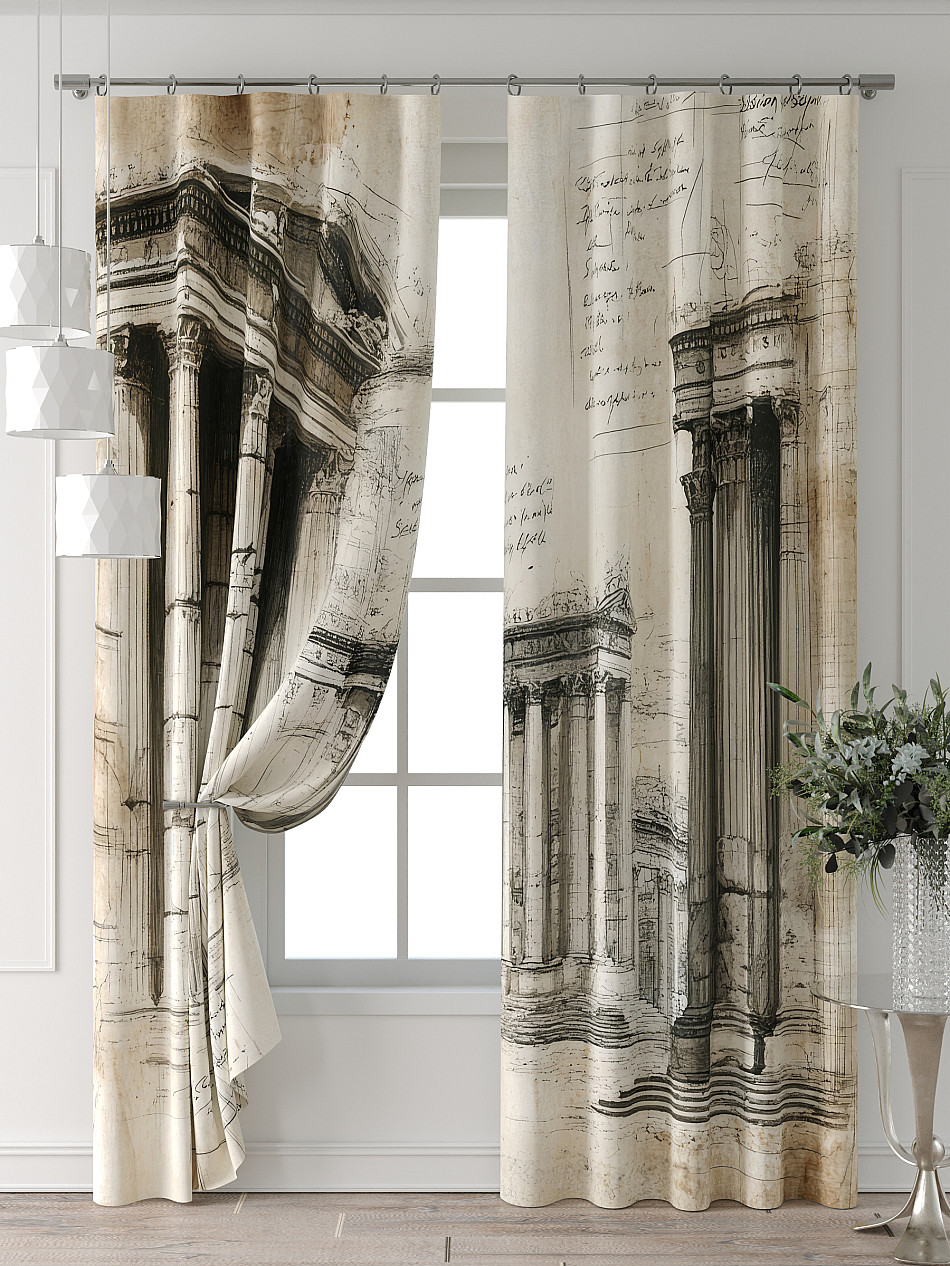 Портьеры 2 шт: Комплект штор из портьерной ткани с печатным рисунком. Фактура ткани прекрасно гармонирует с любым интерьером, а печатный рисунок дает широкие возможности обновить интерьер, фактически не требуя ремонта, за счет огромного выбора. Ткань износостойкая и не требует особого ухода, превосходно драпируется образуя струящиеся складки. Прекрасное решение для создания красоты и уюта с помощью уникальных дизайнов.