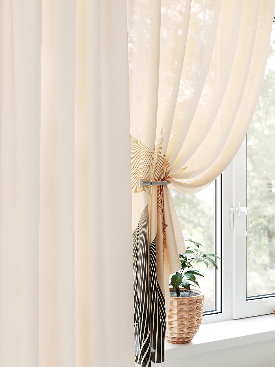 - Состав комплекта Портьера 150х250 см — 1 шт., вуаль 150х180 см — 2 шт.