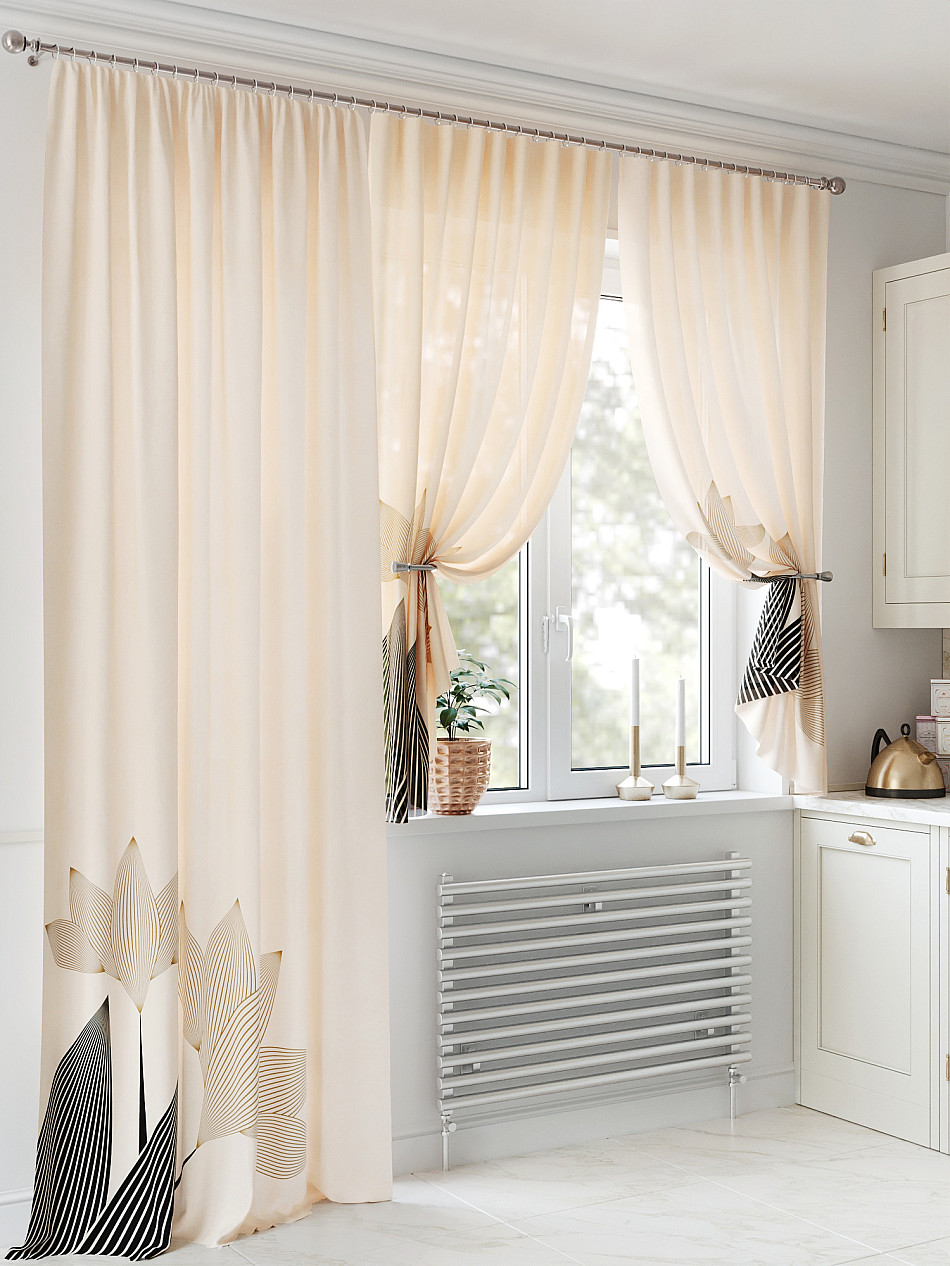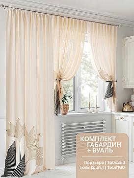 Портьера 150х250 см — 1 шт., вуаль 150х180 см — 2 шт. ( Уменьшить высоту ) Крепление: шторная лента (крючки), кулиска Подробнее