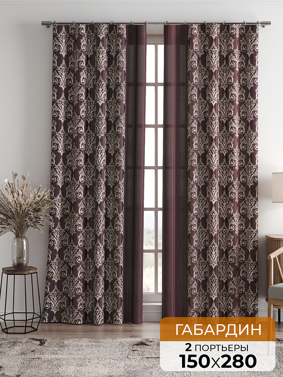 Портьера 2 шт. — 150х280 см. ( Уменьшить высоту ) Крепление: шторная лента (крючки), кулиска Подробнее