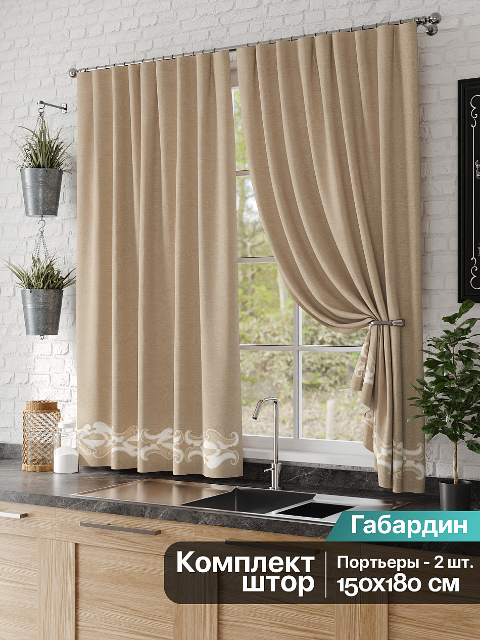 Портьера 2 шт. — 150х180 см. ( Изменить высоту) Крепление: шторная лента (крючки), кулиска Подробнее