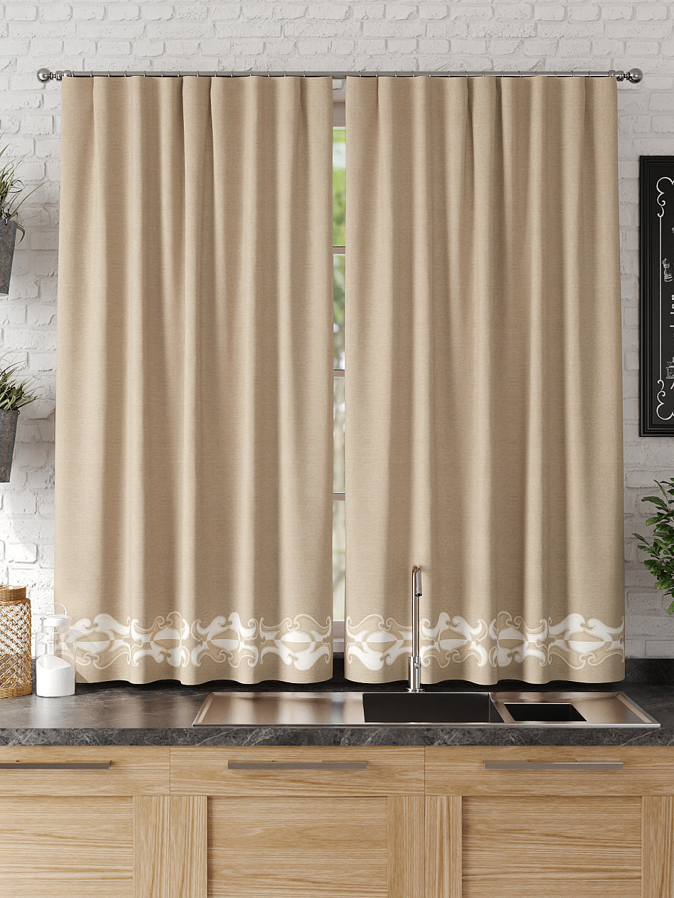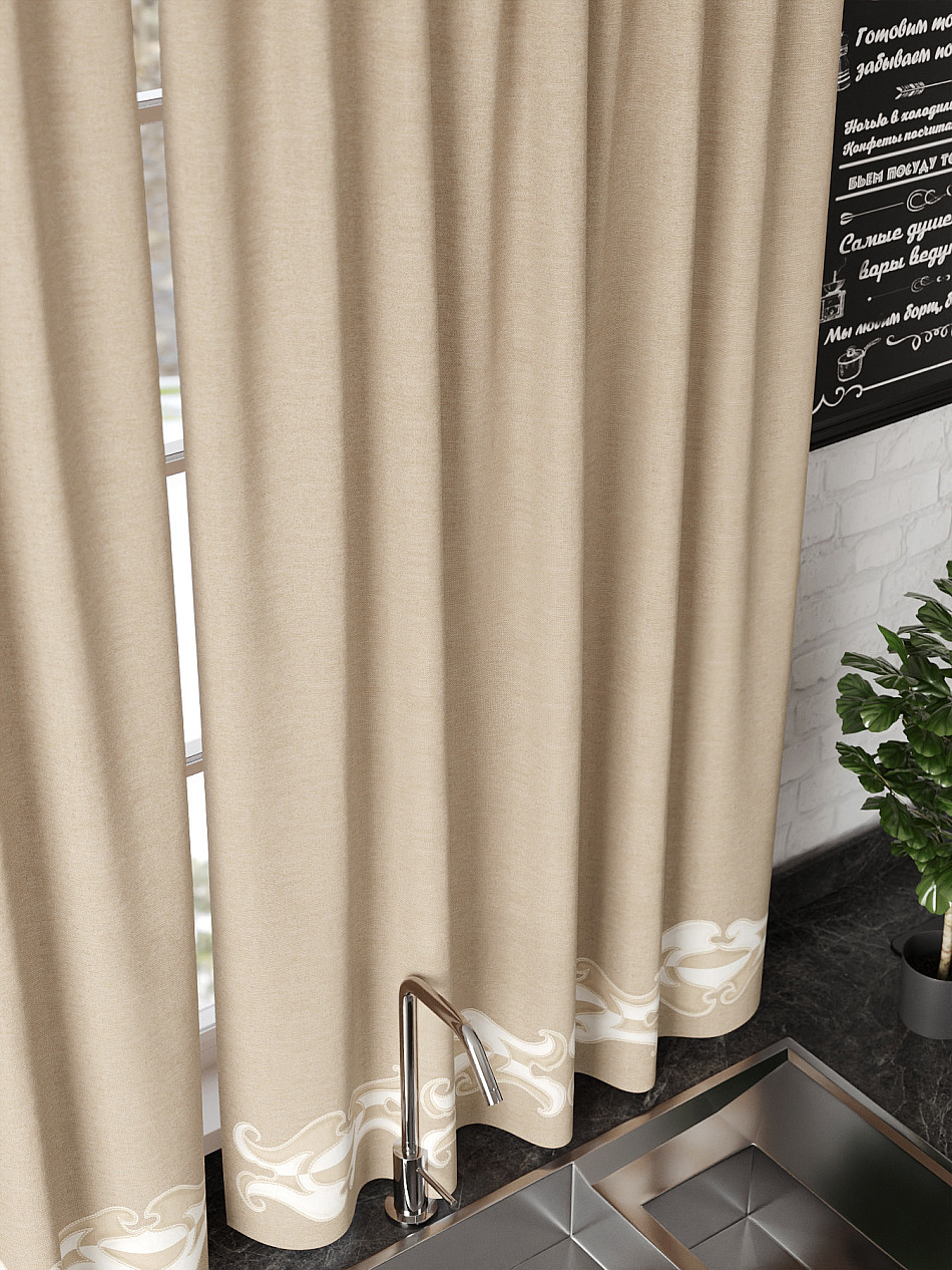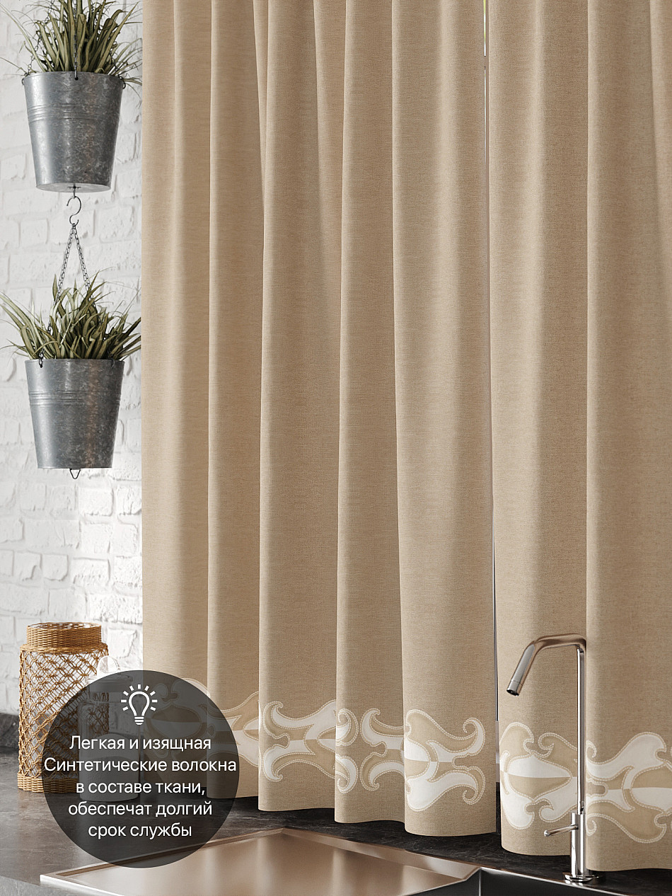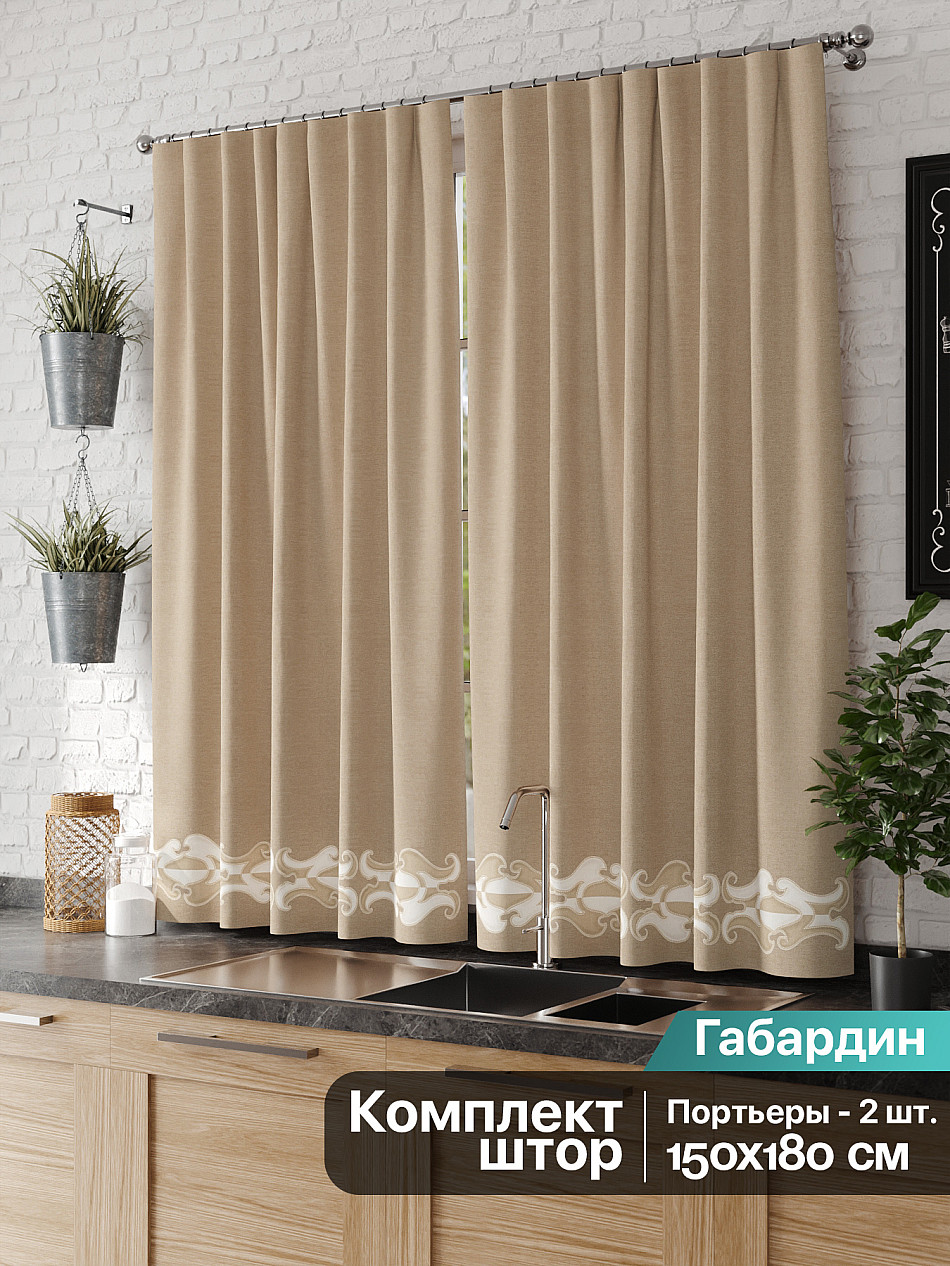 Портьеры 2 шт: Комплект штор из легкой портьерной ткани (габардин) оформлен печатным рисунком. Печатный рисунок дает широкие возможности обновить интерьер фактически нет требуя ремонта за счет огромного выбора. Ткани с печатным рисунком безопасны и не содержат токсичных веществ. Не смотря на то что, материал легкий, он имеет высокую плотность, мало загрязнятся и не требует особого ухода даже после стирки, что важно для кухонных занавесок. Шторы не выцветают, не растягиваются, превосходно драпируются, образуя струящиеся складки. Прекрасное решение для создания красоты и уюта с помощью уникальных дизайнов.