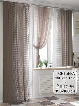 - Состав комплекта Портьера 150х250 см — 1 шт., портьера 150х180 см — 2 шт.
