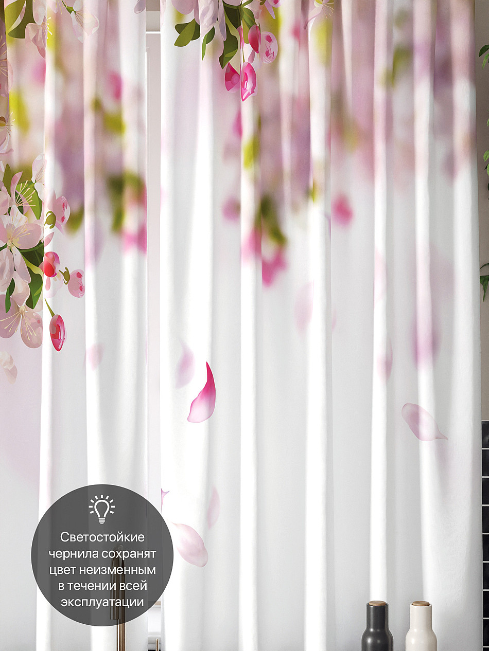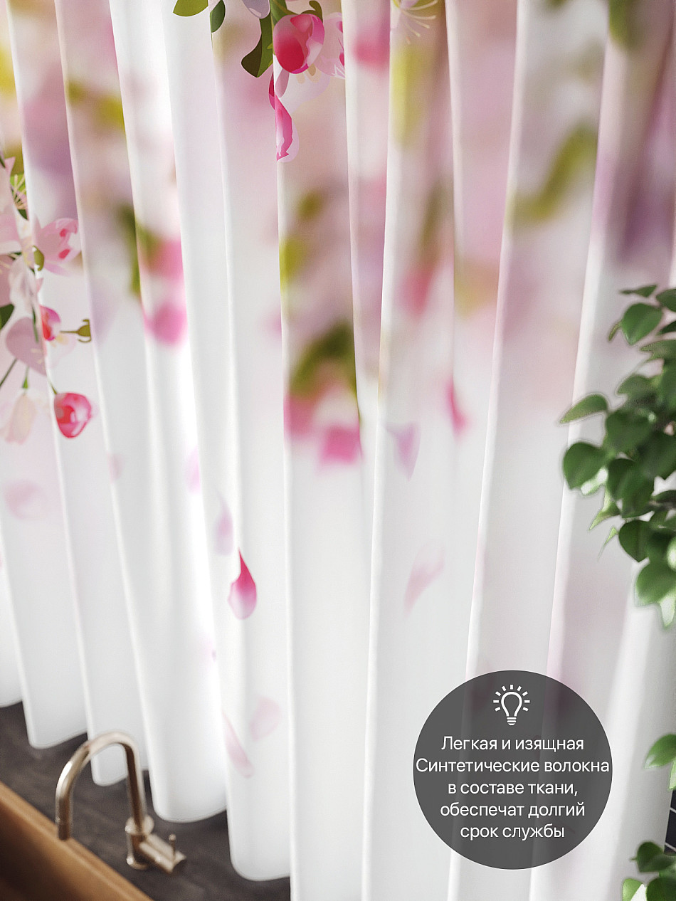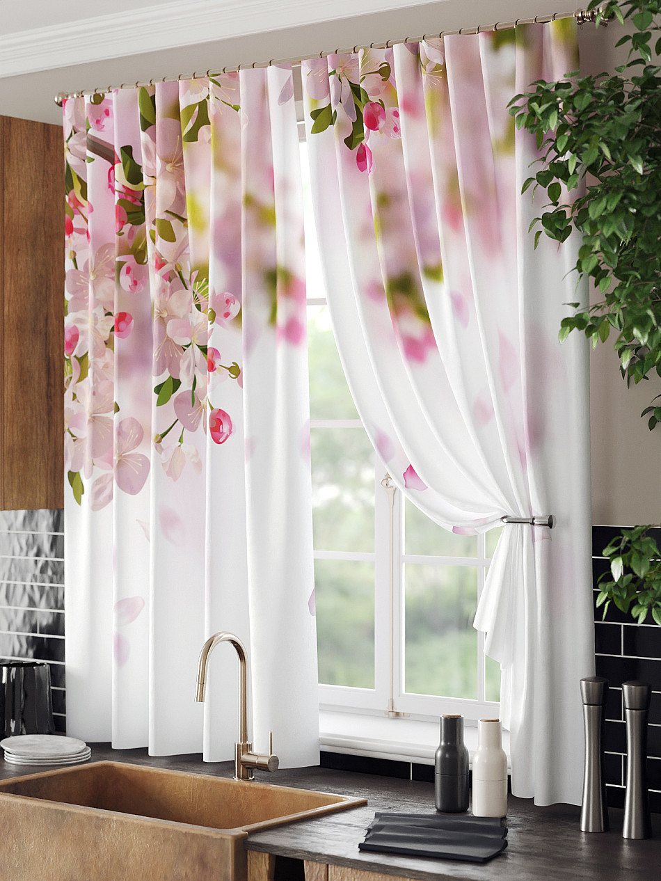 Комплект штор из легкой портьерной ткани (габардин) оформлен печатным рисунком. Печатный рисунок дает широкие возможности обновить интерьер фактически нет требуя ремонта за счет огромного выбора. Ткани с печатным рисунком безопасны и не содержат токсичных веществ. Не смотря на то что, материал легкий, он имеет высокую плотность, мало загрязнятся и не требует особого ухода даже после стирки, что важно для кухонных занавесок. Шторы не выцветают, не растягиваются, превосходно драпируются, образуя струящиеся складки. Прекрасное решение для создания красоты и уюта с помощью уникальных дизайнов.