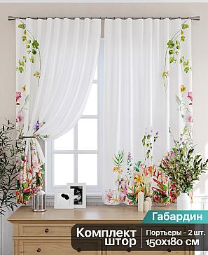 Портьеры 2 шт: Комплект штор из легкой портьерной ткани (габардин) оформлен печатным рисунком. Печатный рисунок дает широкие возможности обновить интерьер фактически нет требуя ремонта за счет огромного выбора. Ткани с печатным рисунком безопасны и не содержат токсичных веществ. Не смотря на то что, материал легкий, он имеет высокую плотность, мало загрязнятся и не требует особого ухода даже после стирки, что важно для кухонных занавесок. Шторы не выцветают, не растягиваются, превосходно драпируются, образуя струящиеся складки. Прекрасное решение для создания красоты и уюта с помощью уникальных дизайнов.