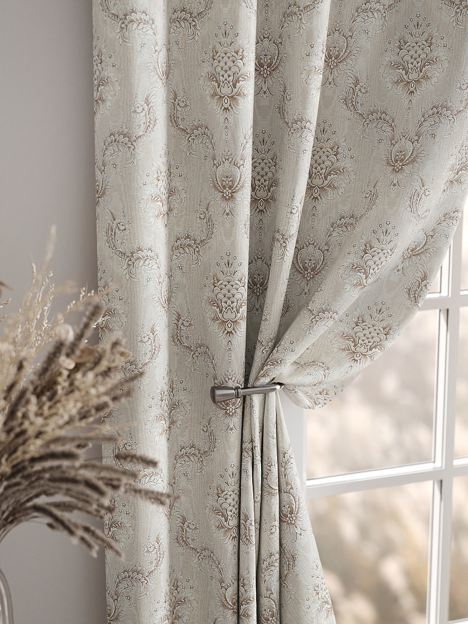 Комплект штор из легкой портьерной ткани (габардин) оформлен печатным рисунком. Печатный рисунок дает широкие возможности обновить интерьер фактически нет требуя ремонта за счет огромного выбора. Ткани с печатным рисунком безопасны и не содержат токсичных веществ. Не смотря на то что, материал легкий, он имеет высокую плотность, мало загрязнятся и не требует особого ухода даже после стирки, что важно для кухонных занавесок. Шторы не выцветают, не растягиваются, превосходно драпируются, образуя струящиеся складки. Прекрасное решение для создания красоты и уюта с помощью уникальных дизайнов.