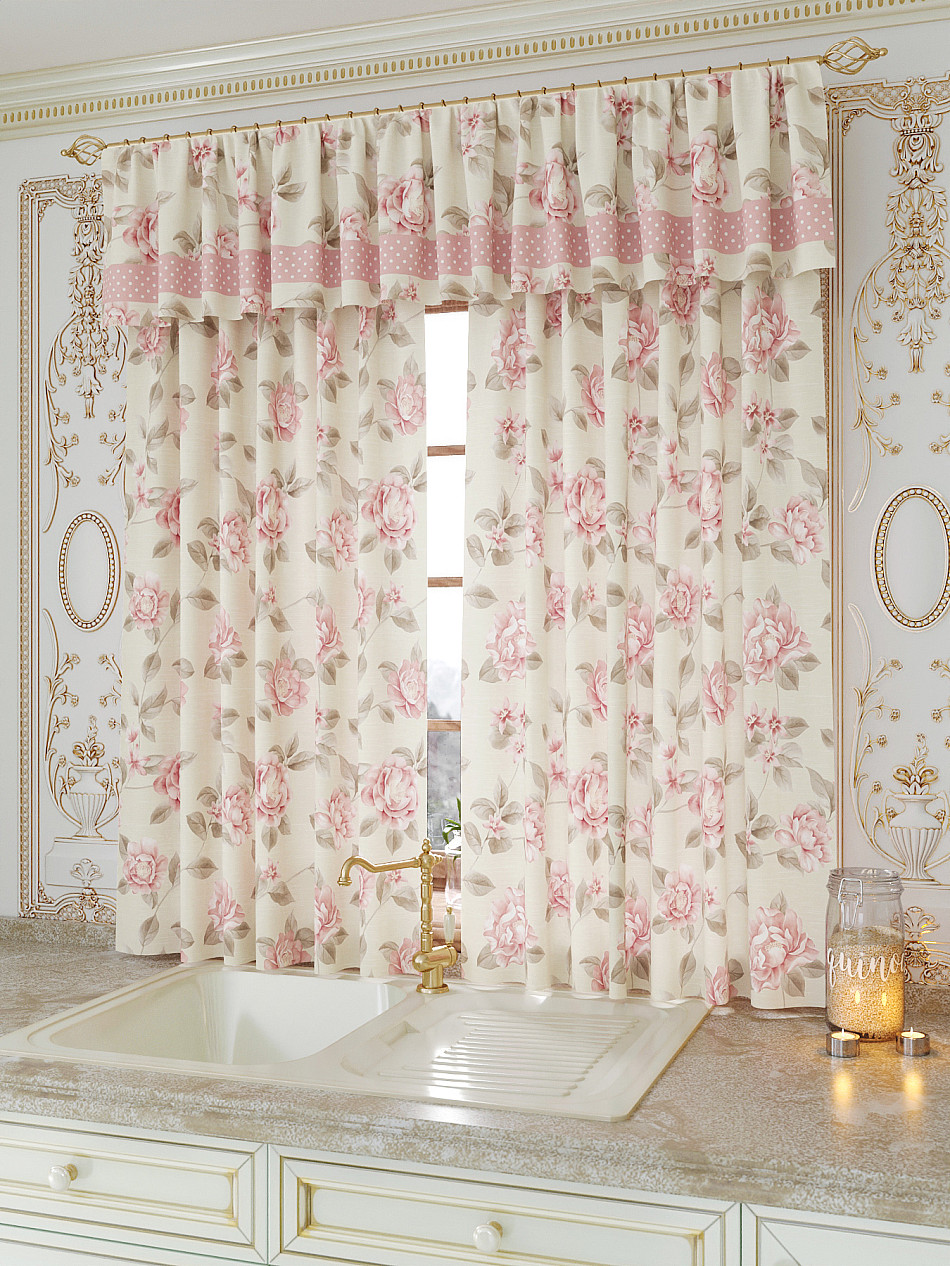 Ламбрекен: легкая основа (Габардин). Ширина — 300 см, высота — 40 см, крепление — шторная лента (крючки).