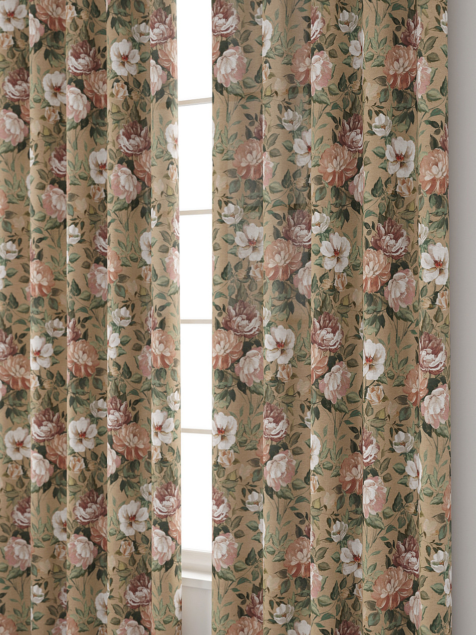 Комплект штор из легкой портьерной ткани (габардин) оформлен печатным рисунком. Печатный рисунок дает широкие возможности обновить интерьер фактически нет требуя ремонта за счет огромного выбора. Ткани с печатным рисунком безопасны и не содержат токсичных веществ. Не смотря на то что, материал легкий, он имеет высокую плотность, мало загрязнятся и не требует особого ухода даже после стирки, что важно для кухонных занавесок. Шторы не выцветают, не растягиваются, превосходно драпируются, образуя струящиеся складки. Прекрасное решение для создания красоты и уюта с помощью уникальных дизайнов.