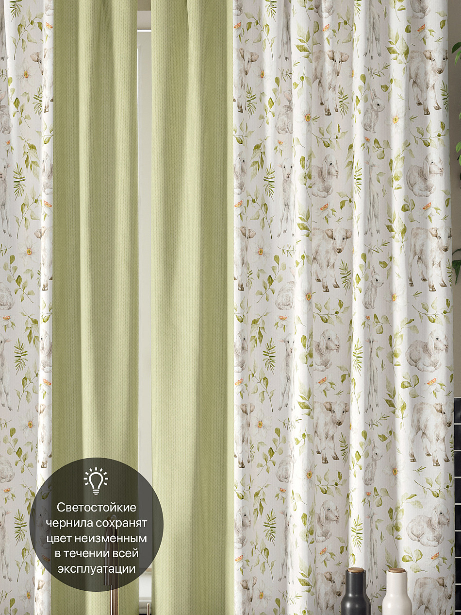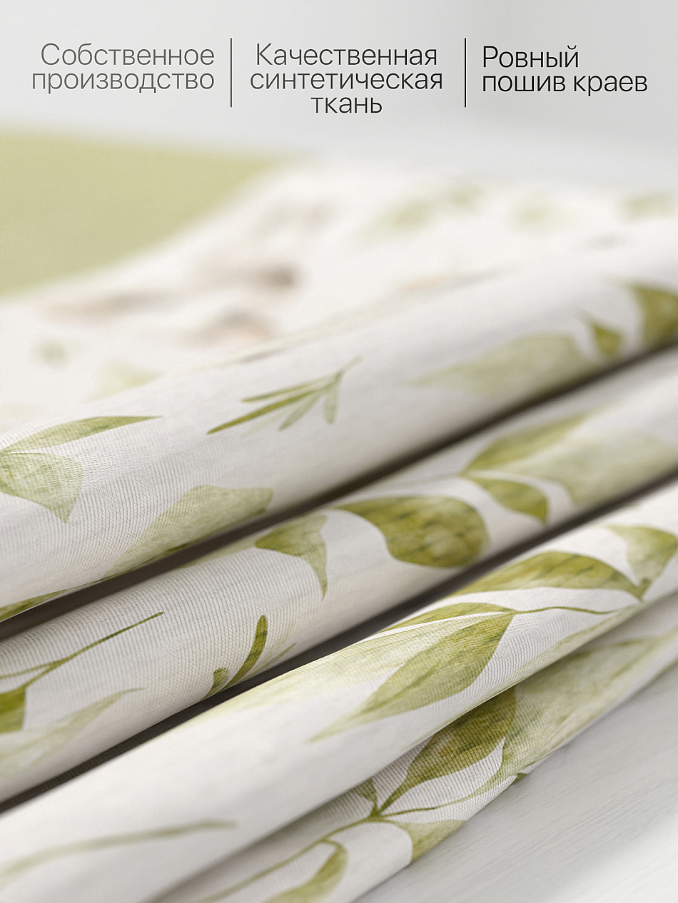 Комплект штор из легкой портьерной ткани (габардин) оформлен печатным рисунком. Печатный рисунок дает широкие возможности обновить интерьер фактически нет требуя ремонта за счет огромного выбора. Ткани с печатным рисунком безопасны и не содержат токсичных веществ. Не смотря на то что, материал легкий, он имеет высокую плотность, мало загрязнятся и не требует особого ухода даже после стирки, что важно для кухонных занавесок. Шторы не выцветают, не растягиваются, превосходно драпируются, образуя струящиеся складки. Прекрасное решение для создания красоты и уюта с помощью уникальных дизайнов.