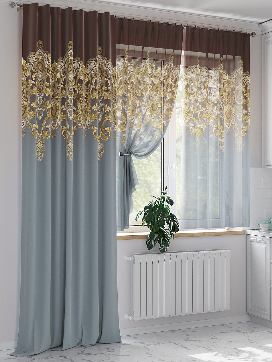 Портьера 150х260 см. — 1 шт., вуаль 150х180 см — 2 шт. ( Уменьшить высоту ) Подробнее