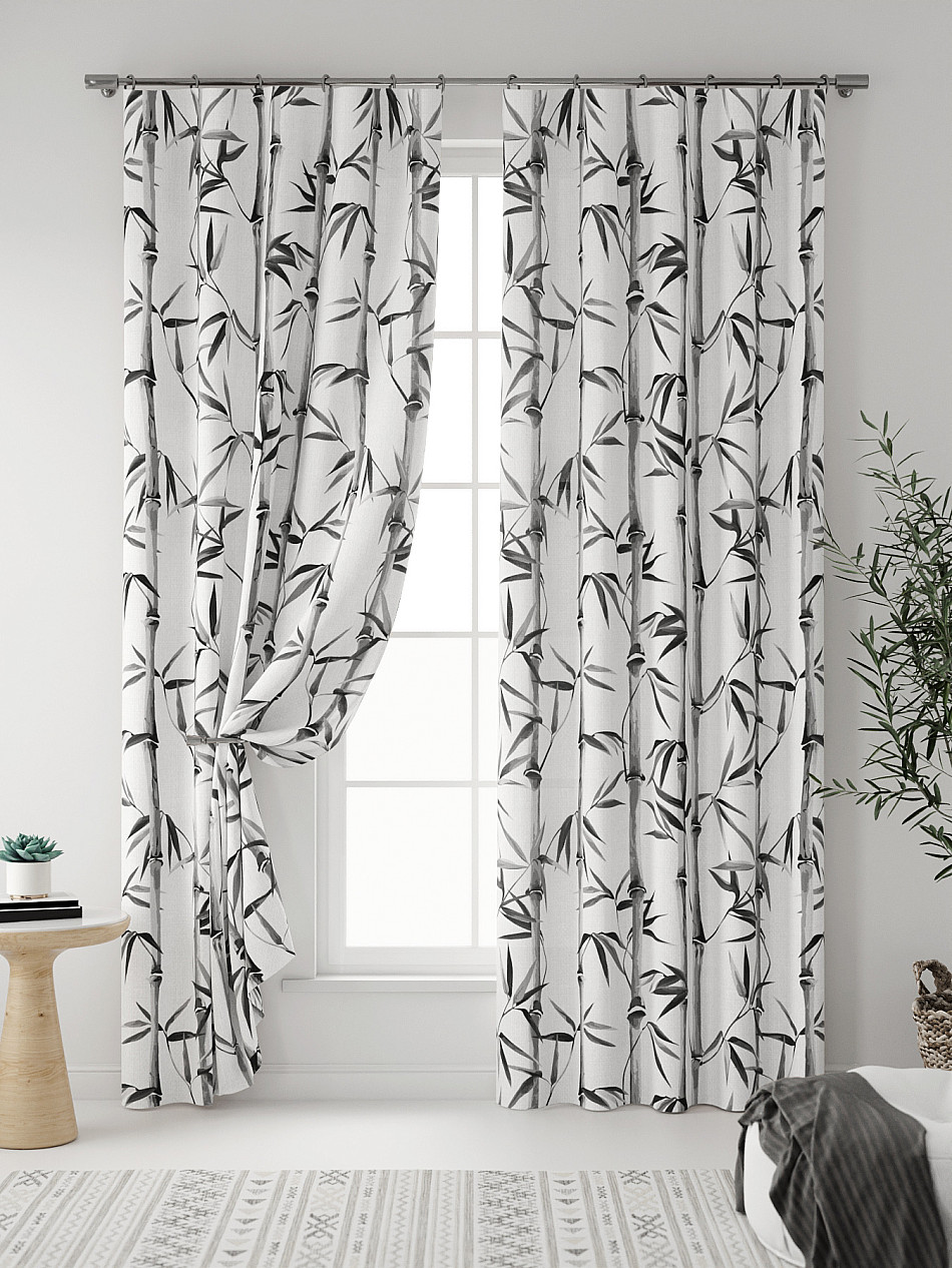 Комплект штор из легкой портьерной ткани (габардин) оформлен печатным рисунком. Печатный рисунок дает широкие возможности обновить интерьер фактически нет требуя ремонта за счет огромного выбора. Ткани с печатным рисунком безопасны и не содержат токсичных веществ. Не смотря на то что, материал легкий, он имеет высокую плотность, мало загрязнятся и не требует особого ухода даже после стирки, что важно для кухонных занавесок. Шторы не выцветают, не растягиваются, превосходно драпируются, образуя струящиеся складки. Прекрасное решение для создания красоты и уюта с помощью уникальных дизайнов.