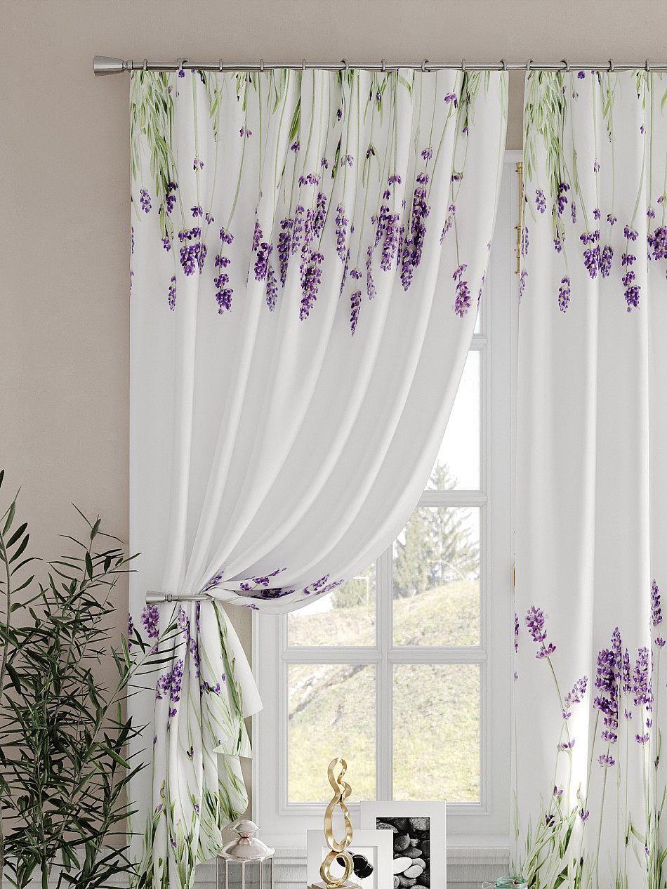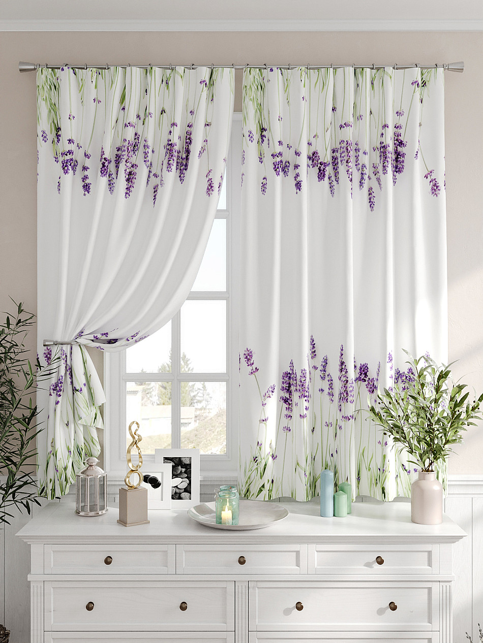 Портьеры 2 шт. Комплект штор из легкой портьерной ткани (габардин) оформлен печатным рисунком. Печатный рисунок дает широкие возможности обновить интерьер фактически не требуя ремонта за счет огромного выбора. Ткани с печатным рисунком безопасны и не содержат токсичных веществ. Не смотря на то, что материал легкий, он имеет высокую плотность, мало загрязнятся и не требует особого ухода даже после стирки, что важно для кухонных занавесок. Шторы не выцветают, не растягиваются, превосходно драпируются, образуя струящиеся складки. Прекрасное решение для создания красоты и уюта с помощью уникальных дизайнов.