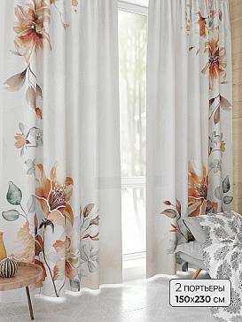 Портьера 2 шт. Подхват - доп.услуга. Комплект штор из легкой портьерной ткани (габардин) оформлен печатным рисунком. Печатный рисунок дает широкие возможности обновить интерьер фактически нет требуя ремонта за счет огромного выбора. Ткани с печатным рисунком безопасны и не содержат токсичных веществ. Не смотря на то что, материал легкий, он имеет высокую плотность, мало загрязнятся и не требует особого ухода даже после стирки, что важно для кухонных занавесок. Шторы не выцветают, не растягиваются, превосходно драпируются, образуя струящиеся складки. Прекрасное решение для создания красоты и уюта с помощью уникальных дизайнов.