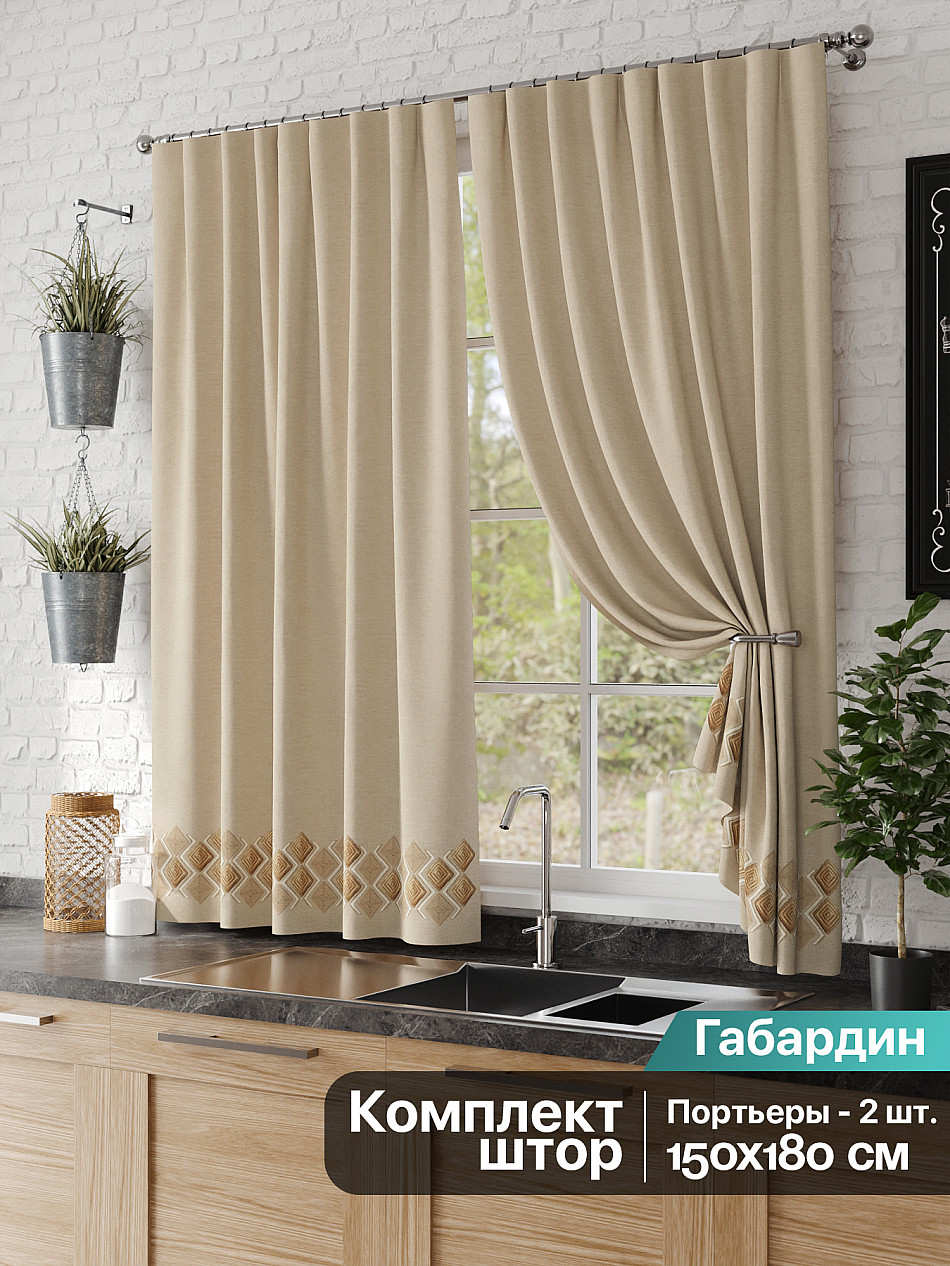 Портьера 2 шт. — 150х180 см. ( Изменить высоту) Крепление: шторная лента (крючки), кулиска Подробнее