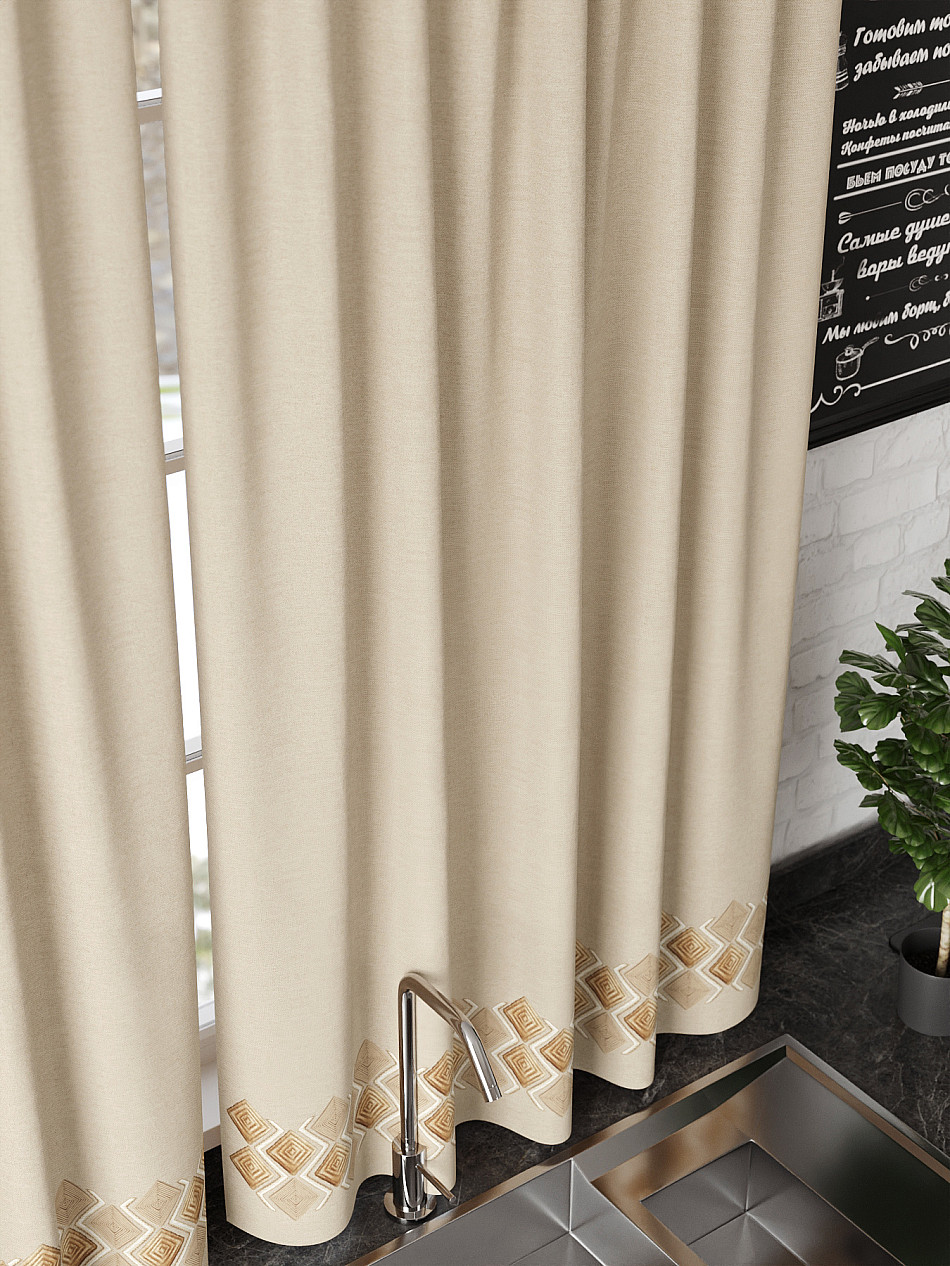 Портьеры 2 шт: Комплект штор из легкой портьерной ткани (габардин) оформлен печатным рисунком. Печатный рисунок дает широкие возможности обновить интерьер фактически нет требуя ремонта за счет огромного выбора. Ткани с печатным рисунком безопасны и не содержат токсичных веществ. Не смотря на то что, материал легкий, он имеет высокую плотность, мало загрязнятся и не требует особого ухода даже после стирки, что важно для кухонных занавесок. Шторы не выцветают, не растягиваются, превосходно драпируются, образуя струящиеся складки. Прекрасное решение для создания красоты и уюта с помощью уникальных дизайнов.