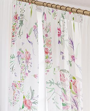 ВыбратьТюль 2 шт и 2 подхвата. Легкая основа (вуаль) оформлена флористическим рисунком. Размеры одного полотна: