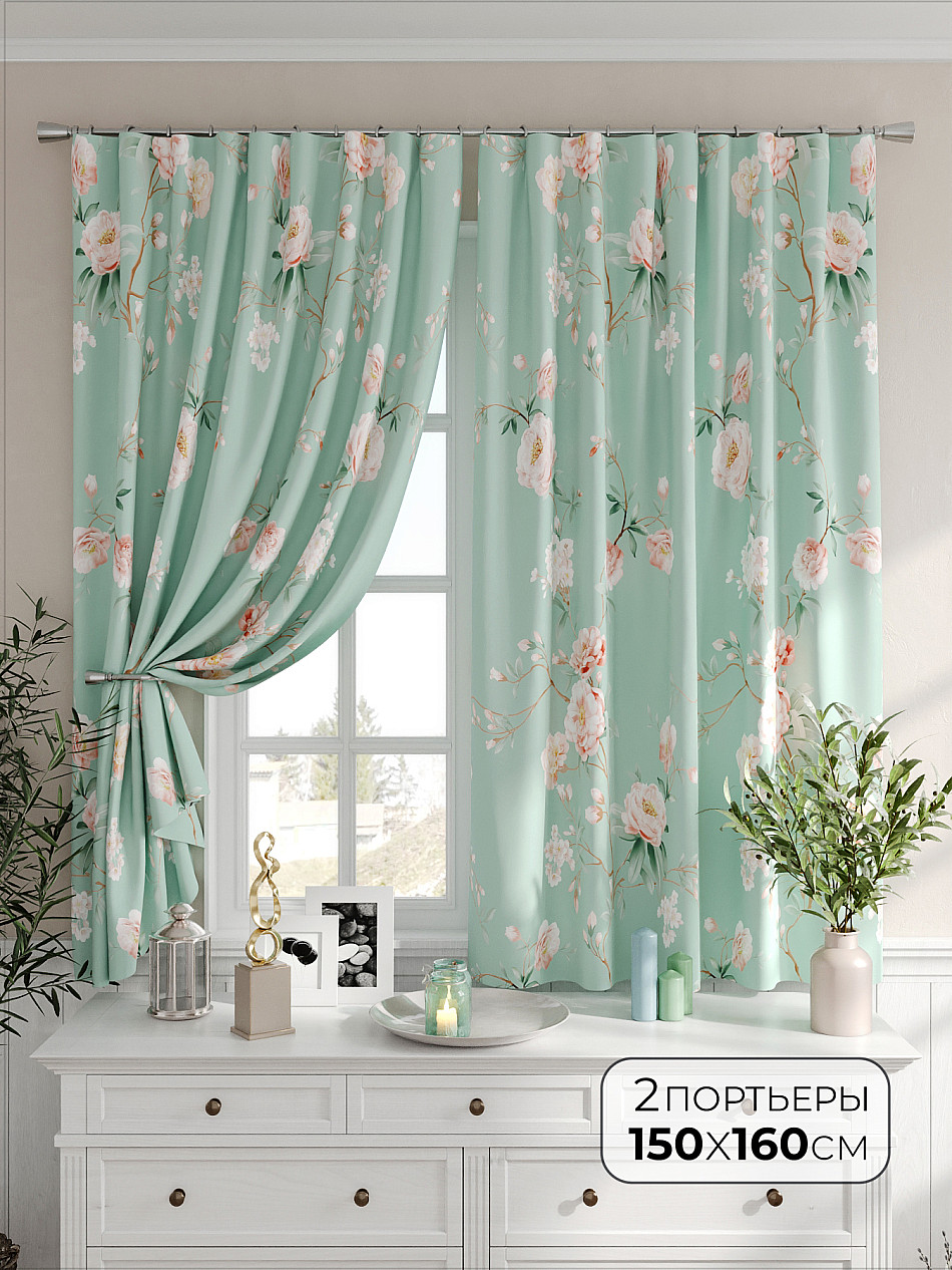 Портьеры 150х160 см — 2 шт. ( Изменить высоту) Крепление: шторная лента (крючки), кулиска Подробнее