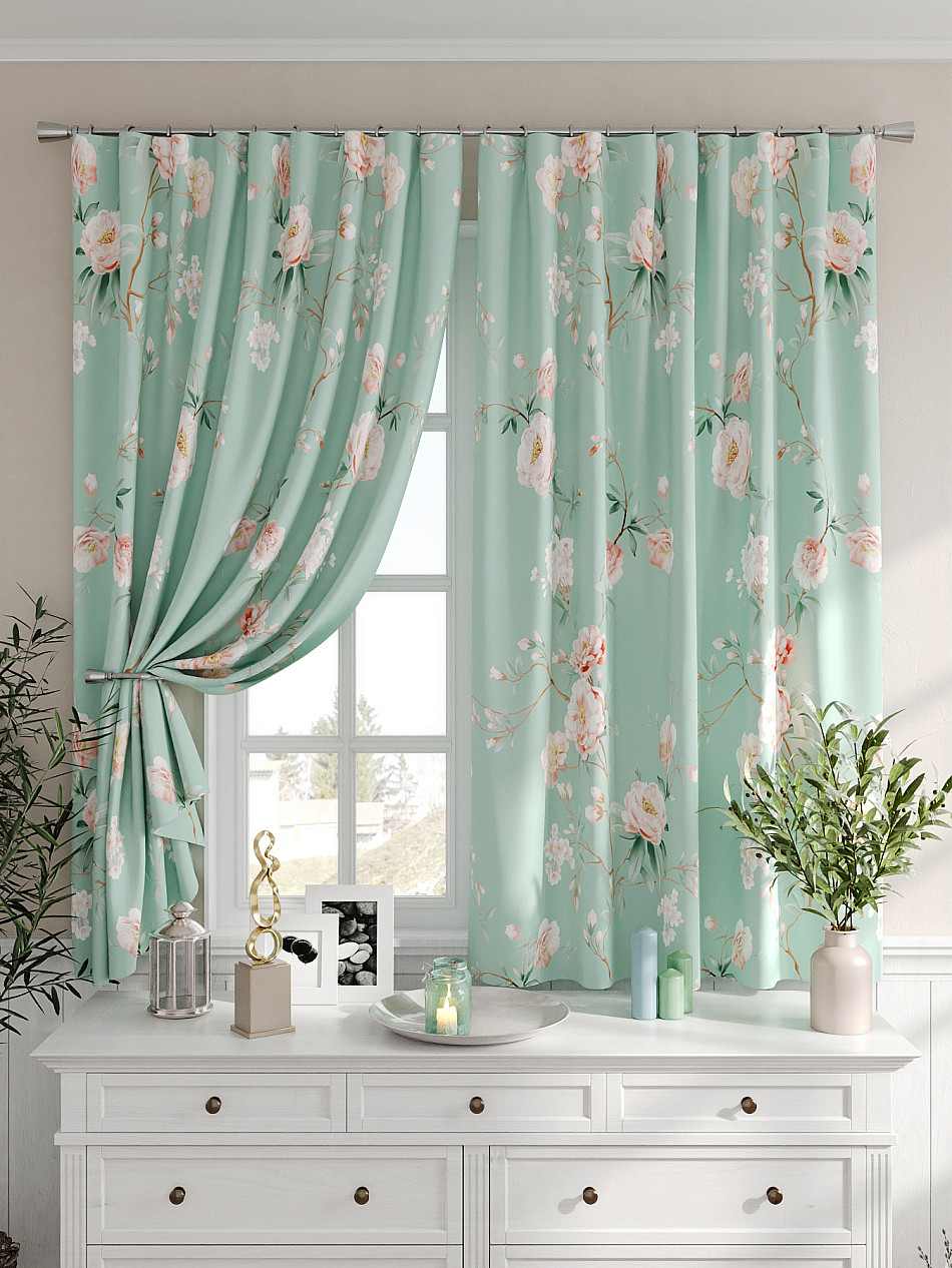 Портьеры 2 шт. Комплект штор из легкой портьерной ткани (габардин) оформлен печатным рисунком. Печатный рисунок дает широкие возможности обновить интерьер фактически не требуя ремонта за счет огромного выбора. Ткани с печатным рисунком безопасны и не содержат токсичных веществ. Не смотря на то, что материал легкий, он имеет высокую плотность, мало загрязнятся и не требует особого ухода даже после стирки, что важно для кухонных занавесок. Шторы не выцветают, не растягиваются, превосходно драпируются, образуя струящиеся складки. Прекрасное решение для создания красоты и уюта с помощью уникальных дизайнов.