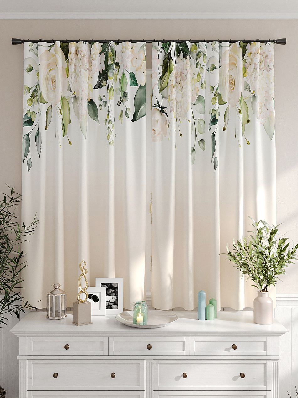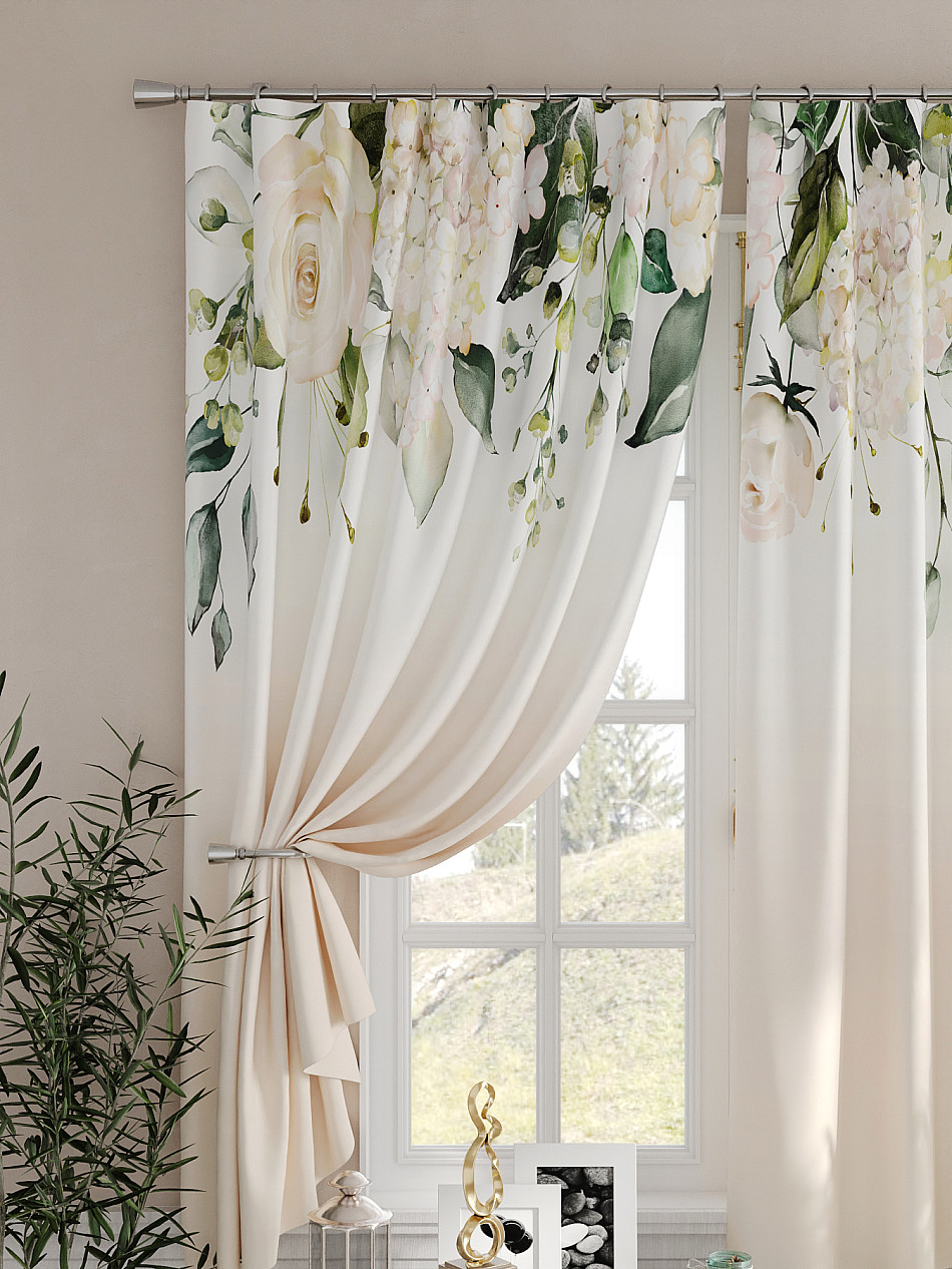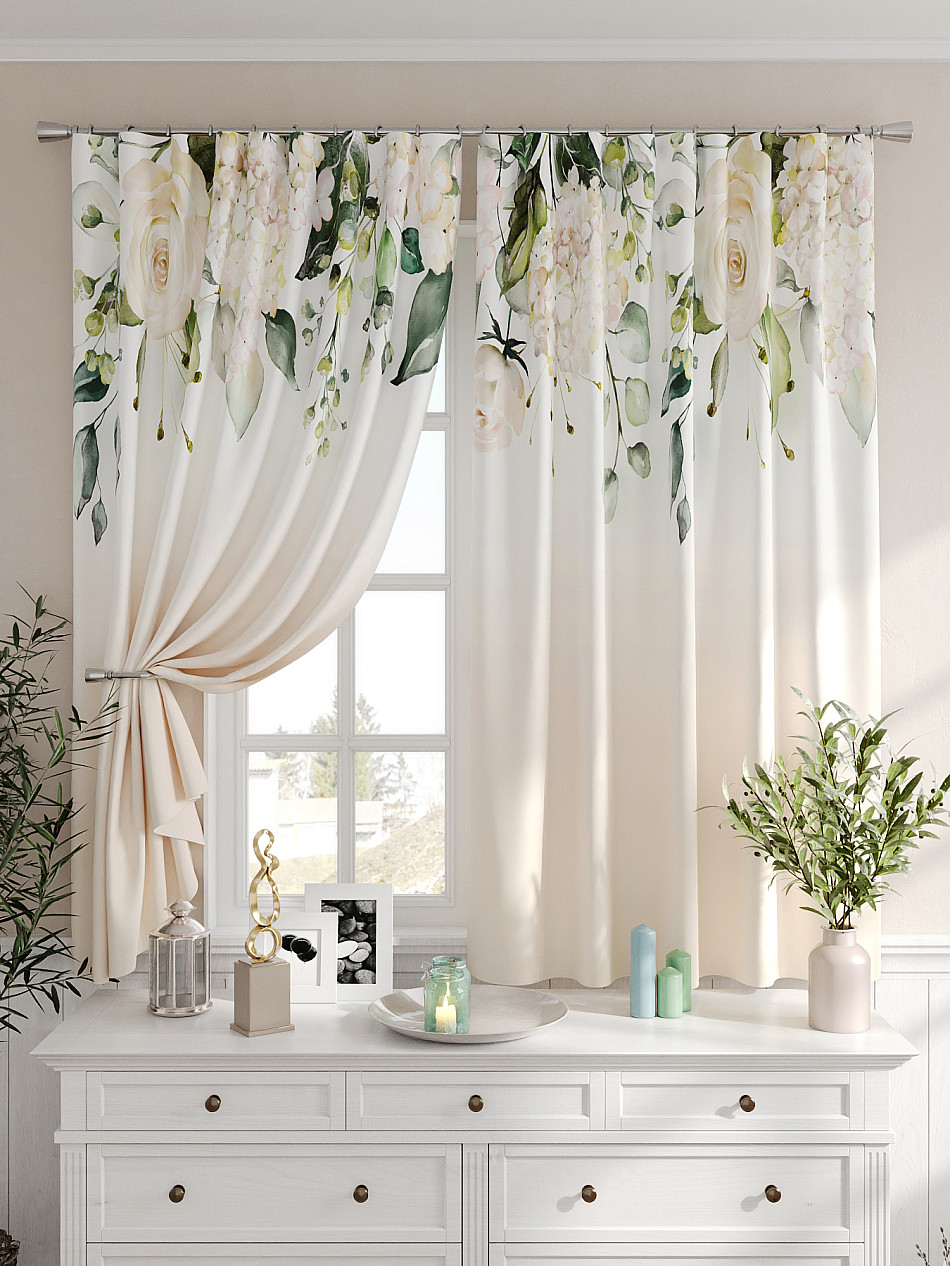 Портьеры 2 шт. Комплект штор из легкой портьерной ткани (габардин) оформлен печатным рисунком. Печатный рисунок дает широкие возможности обновить интерьер фактически не требуя ремонта за счет огромного выбора. Ткани с печатным рисунком безопасны и не содержат токсичных веществ. Не смотря на то, что материал легкий, он имеет высокую плотность, мало загрязнятся и не требует особого ухода даже после стирки, что важно для кухонных занавесок. Шторы не выцветают, не растягиваются, превосходно драпируются, образуя струящиеся складки. Прекрасное решение для создания красоты и уюта с помощью уникальных дизайнов.