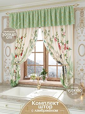 - Состав комплекта Портьеры 150х180 см. — 2 шт., Ламбрекен 300х40 см. — 1 шт.