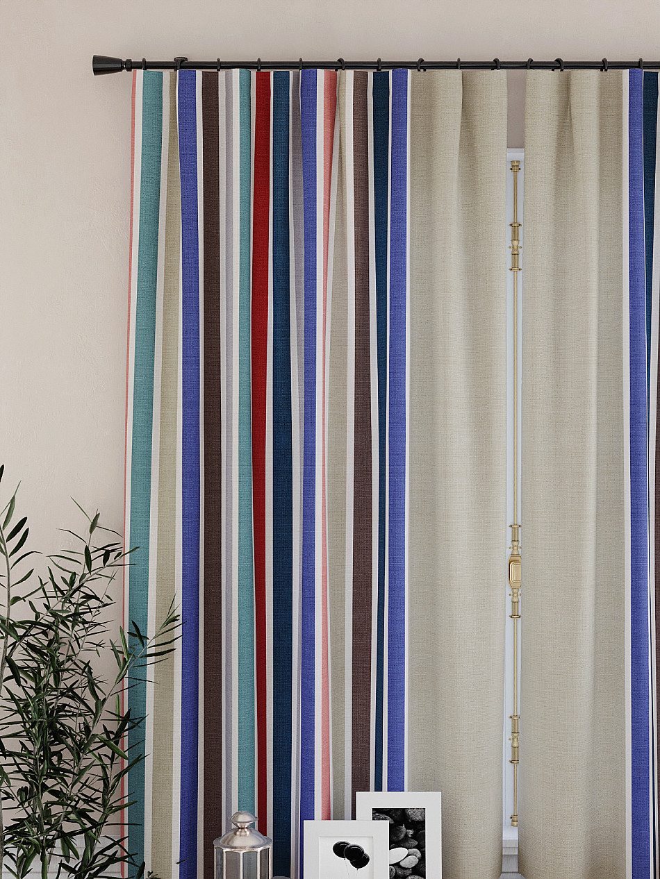 По верхнему краю портьер пришита шторная тесьма 6 см, с ее помощью затянув узелки от кордовых нитей с обеих сторон и стянув их до нужного размера можно сформировать округлые складки, далее вставить крючки в кармашки и повесить на карниз. Обязательно проверьте кордовые нити – они должны быть надежно завязаны, в противном случае во время стягивания они могут вылететь. Шторная тесьма имеет два ряда кармашков, с их помощью можно регулировать не только длину, но и ширину. Такое крепление подходит для всех типов карнизов.