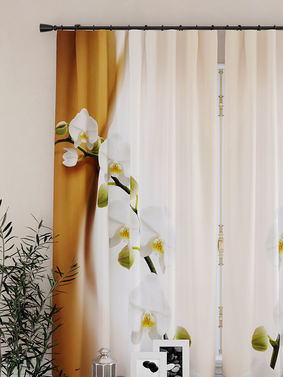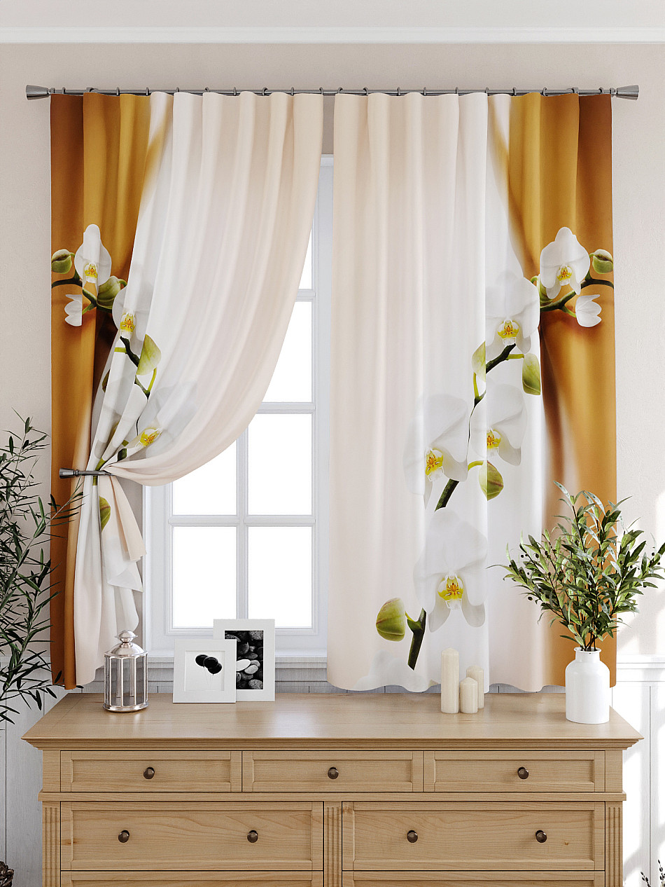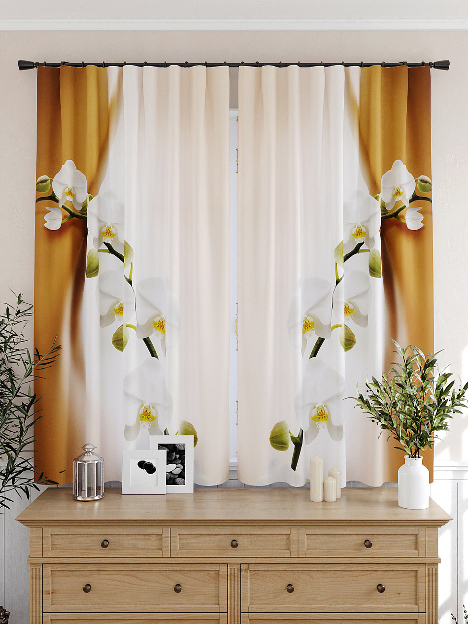 Портьеры 2 шт: Комплект штор из легкой портьерной ткани (габардин) оформлен печатным рисунком. Печатный рисунок дает широкие возможности обновить интерьер фактически нет требуя ремонта за счет огромного выбора. Ткани с печатным рисунком безопасны и не содержат токсичных веществ. Не смотря на то что, материал легкий, он имеет высокую плотность, мало загрязнятся и не требует особого ухода даже после стирки, что важно для кухонных занавесок. Шторы не выцветают, не растягиваются, превосходно драпируются, образуя струящиеся складки. Прекрасное решение для создания красоты и уюта с помощью уникальных дизайнов.