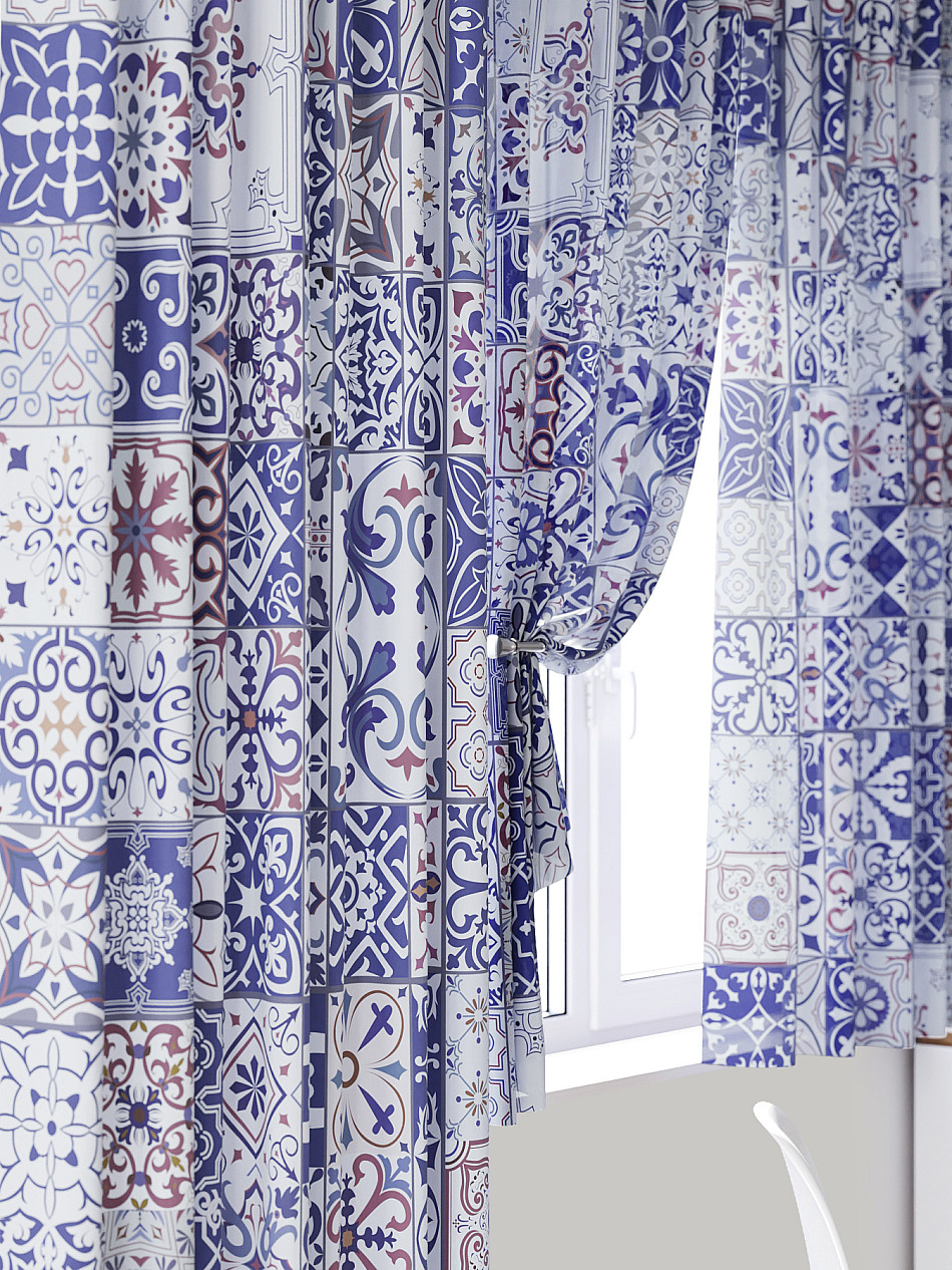 Портьера 1 шт. Подхват - доп.услуга. Комплект для интерьера с балконной дверью, состоит из легкой портьеры для двери и тюли для окна. Оригинальная ассиметричная конструкция оживит любое помещение. Красивая одиночная портьера украсит балконный проём и обеспечит удобный доступ к двери. Легкая вуаль с пышными складками создаст воздушный образ окна и защитит от прямых солнечных лучей, мягко рассеивая свет.
