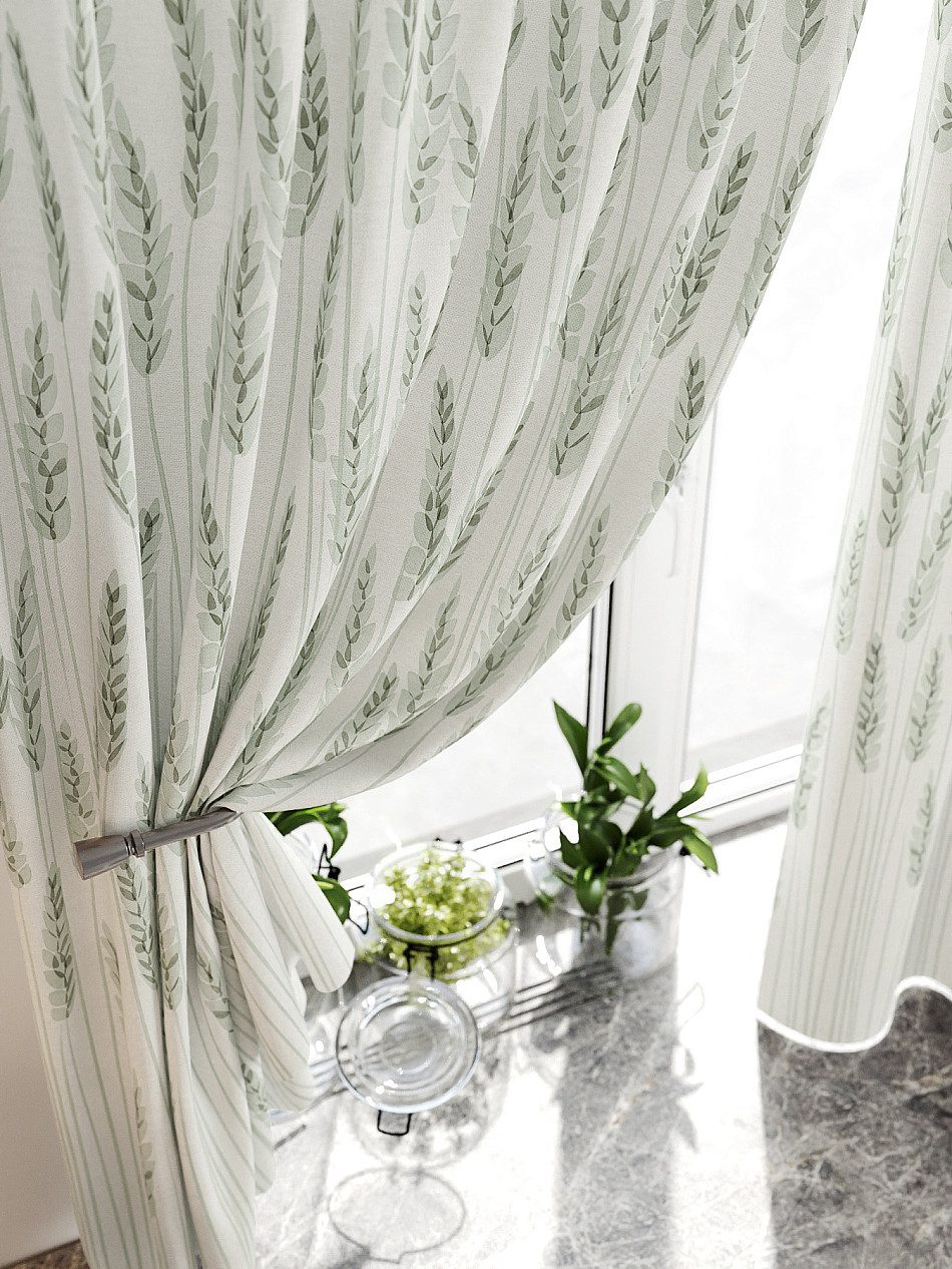 Комплект штор из легкой портьерной ткани (габардин) оформлен печатным рисунком. Печатный рисунок дает широкие возможности обновить интерьер фактически нет требуя ремонта за счет огромного выбора. Ткани с печатным рисунком безопасны и не содержат токсичных веществ. Не смотря на то что, материал легкий, он имеет высокую плотность, мало загрязнятся и не требует особого ухода даже после стирки, что важно для кухонных занавесок. Шторы не выцветают, не растягиваются, превосходно драпируются, образуя струящиеся складки. Прекрасное решение для создания красоты и уюта с помощью уникальных дизайнов.