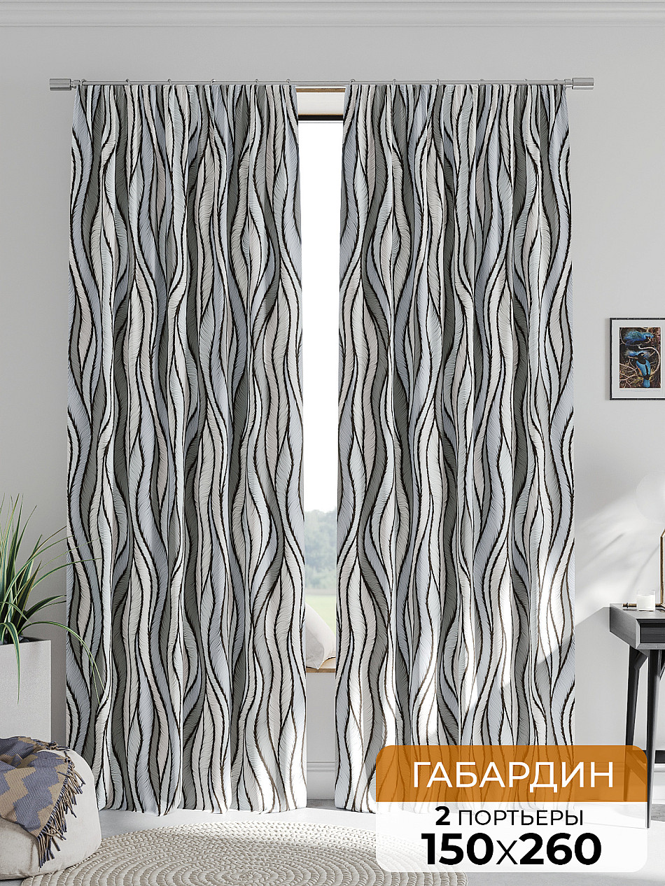 Портьера 150х260 см. — 2 шт. ( Уменьшить высоту ) Крепление: шторная лента (крючки), кулиска Подробнее