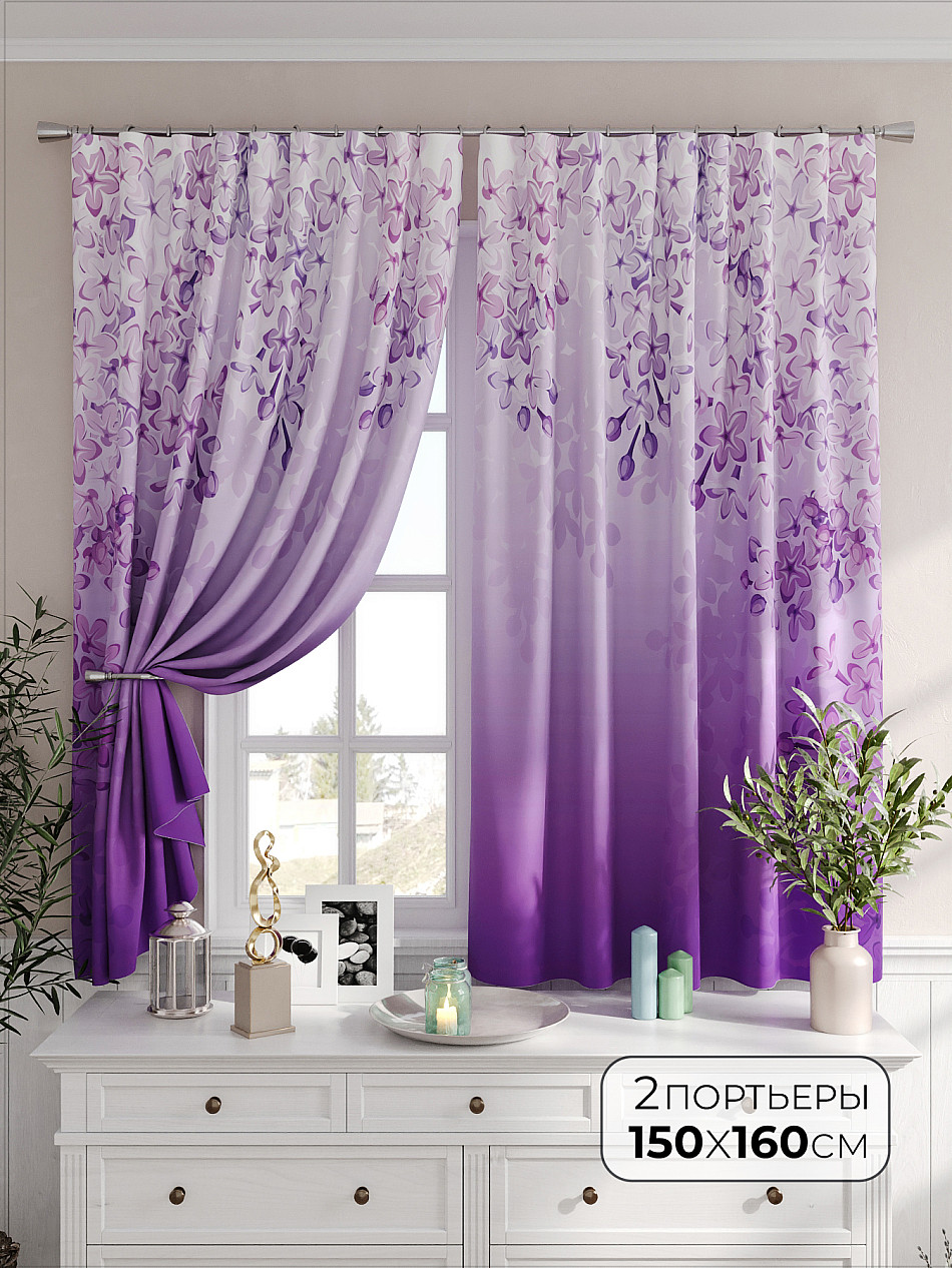 Портьеры 2 шт. Комплект штор из легкой портьерной ткани (габардин) оформлен печатным рисунком. Печатный рисунок дает широкие возможности обновить интерьер фактически не требуя ремонта за счет огромного выбора. Ткани с печатным рисунком безопасны и не содержат токсичных веществ. Не смотря на то, что материал легкий, он имеет высокую плотность, мало загрязнятся и не требует особого ухода даже после стирки, что важно для кухонных занавесок. Шторы не выцветают, не растягиваются, превосходно драпируются, образуя струящиеся складки. Прекрасное решение для создания красоты и уюта с помощью уникальных дизайнов.